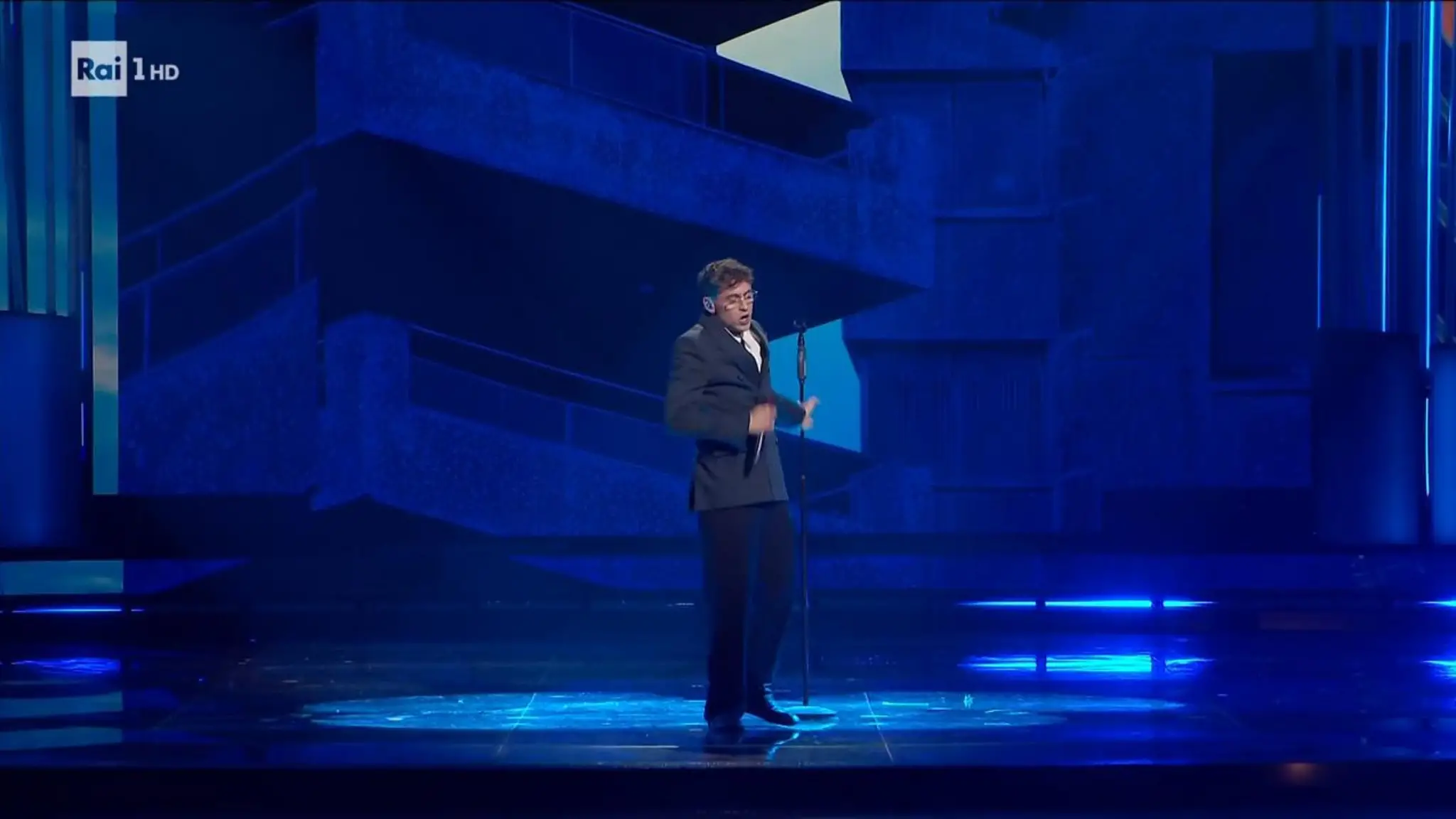 L'esibizione di Tredici Pietro con 'Uomo che cade'