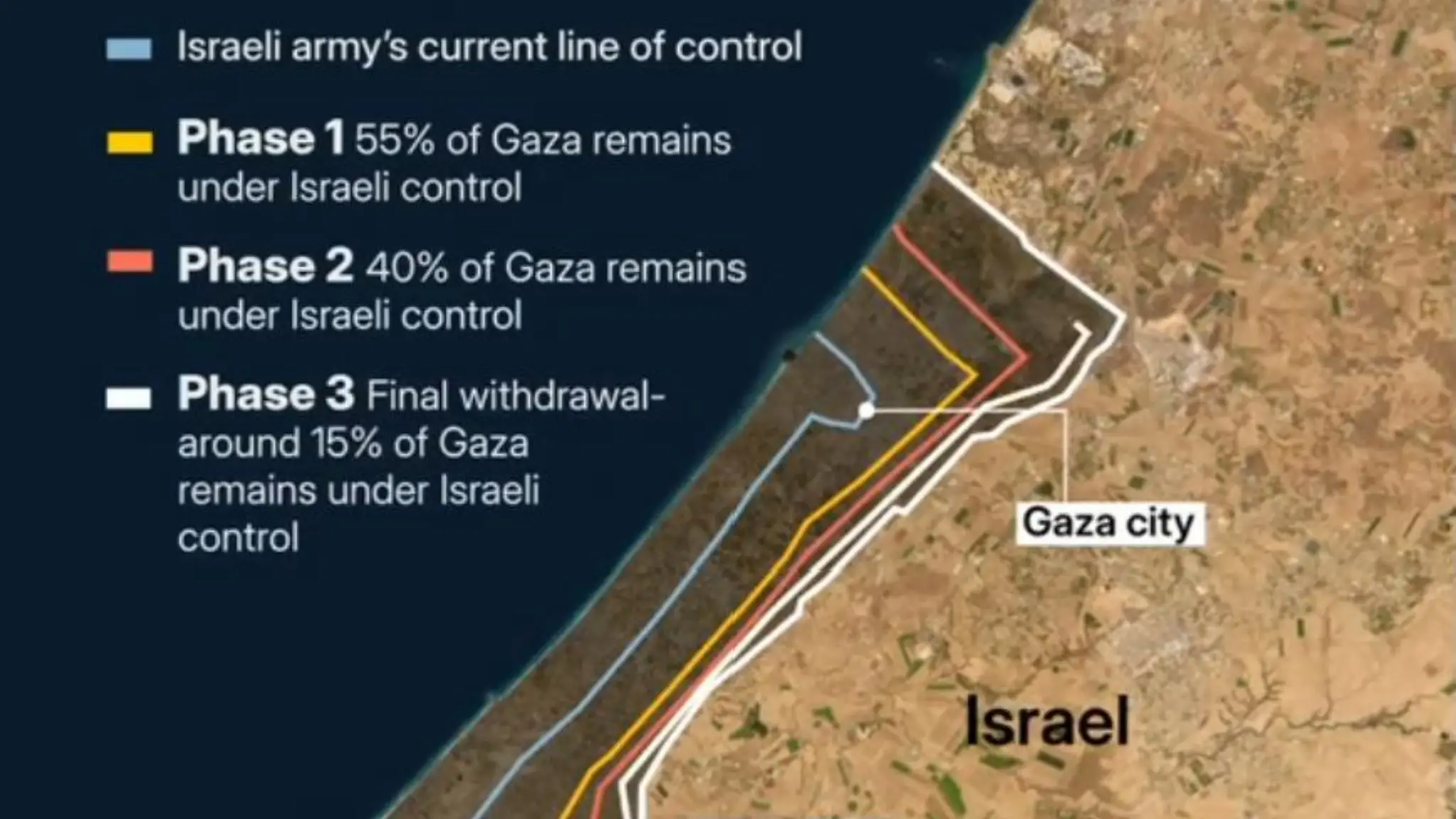 Le fasi dell'avanzamento militare israeliano lungo i confini di Gaza