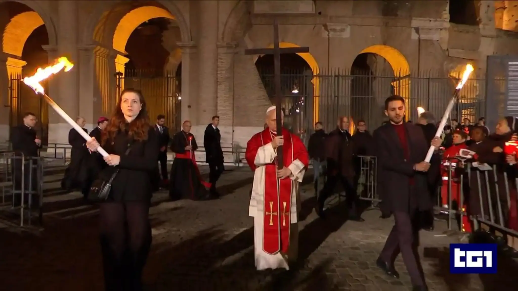 Il Pontefice porta la croce per tutte e 14 le stazioni: 30mila persone assistono al Colosseo