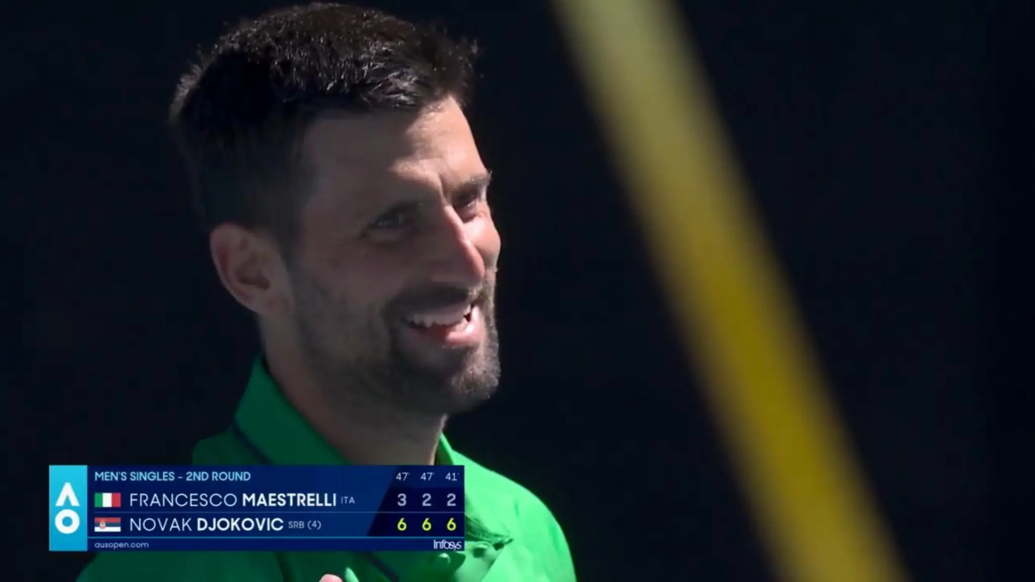 Maestrelli risponde al servizio di Djokovic e manda a rete. L'ultimo punto che chiude il match