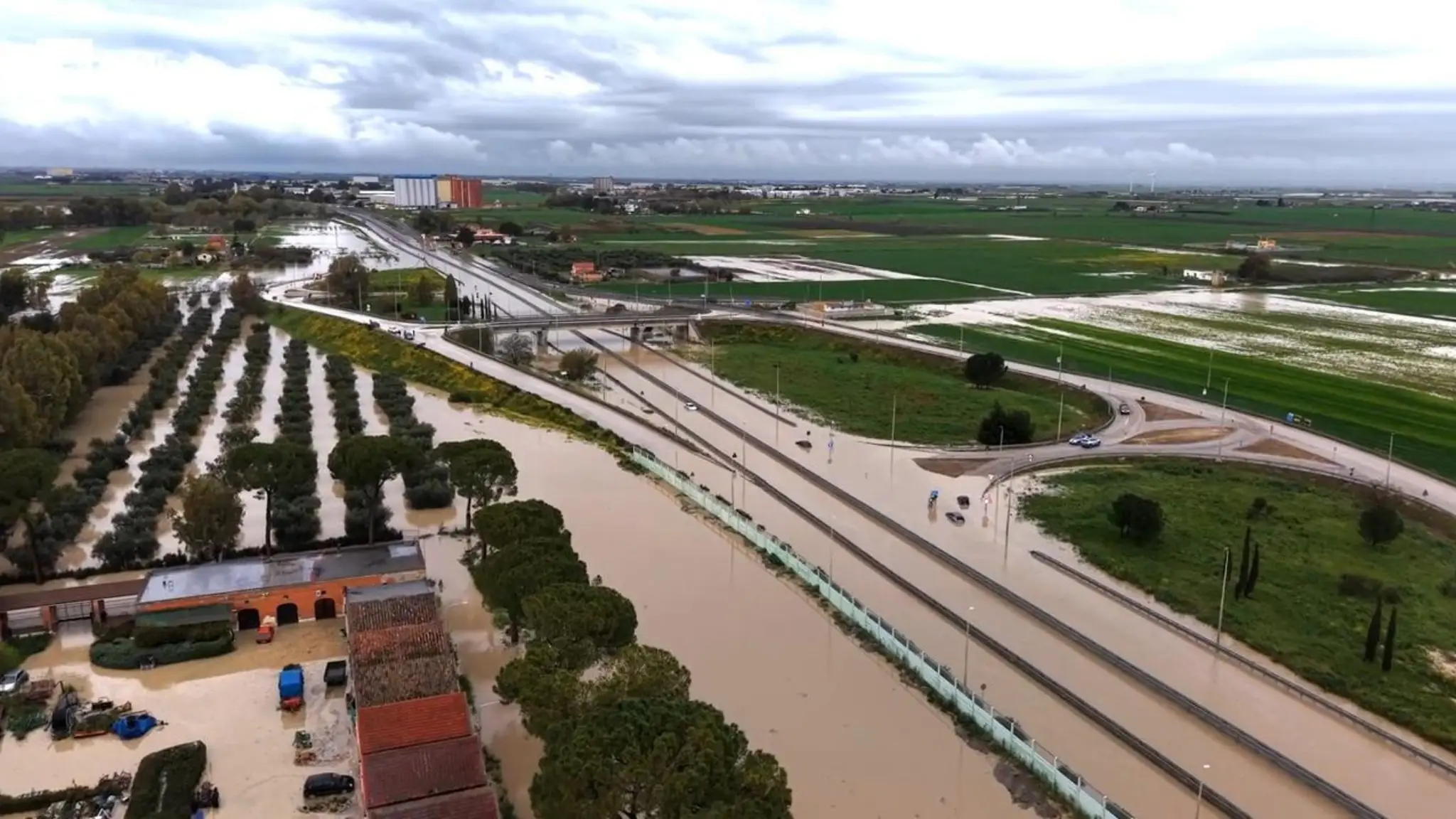 Le immagini dal drone girate all’altezza di Borgo Incoronata, diverse auto sommerse dall’acqua
