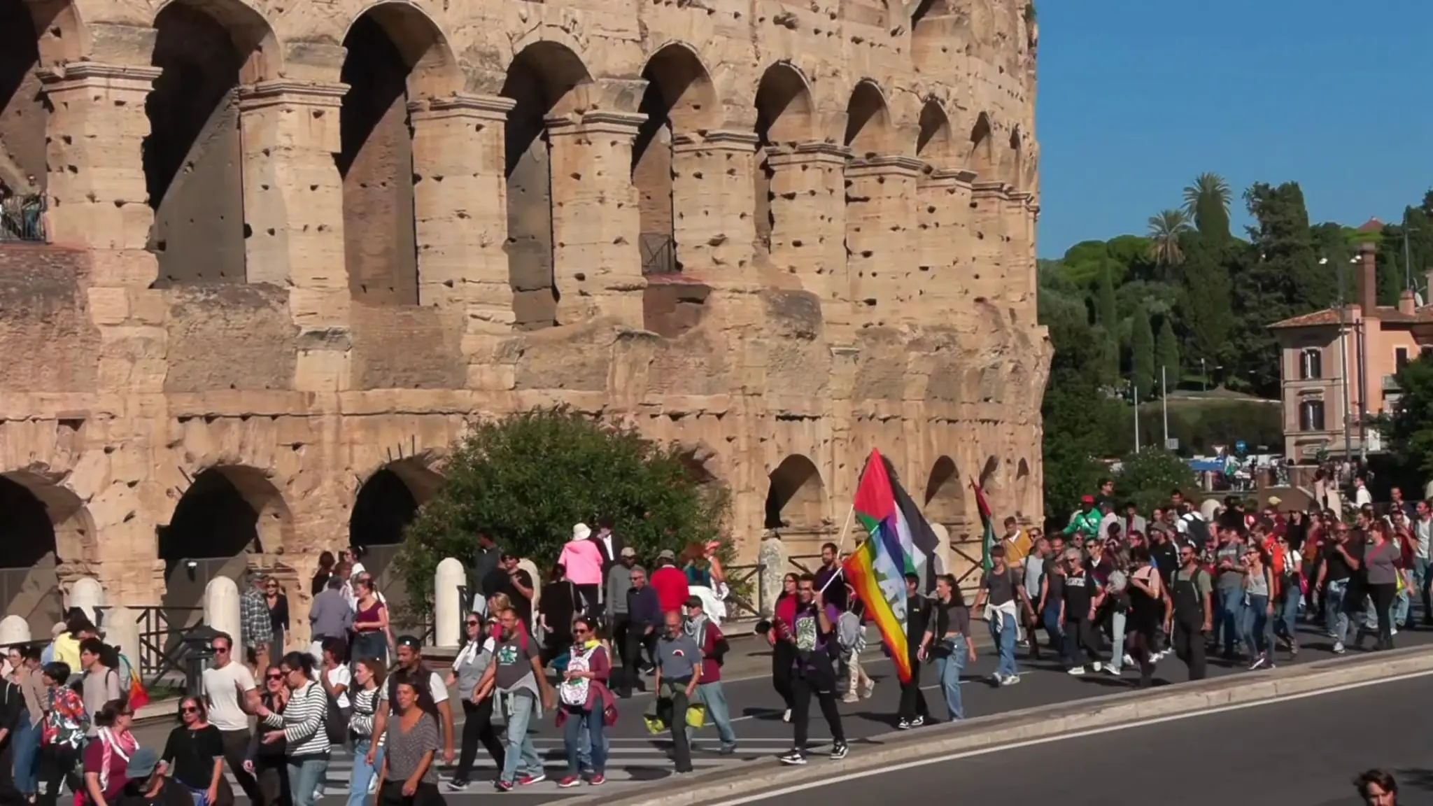 Manifestazione per la Palestina, il corteo davanti al Colosseo