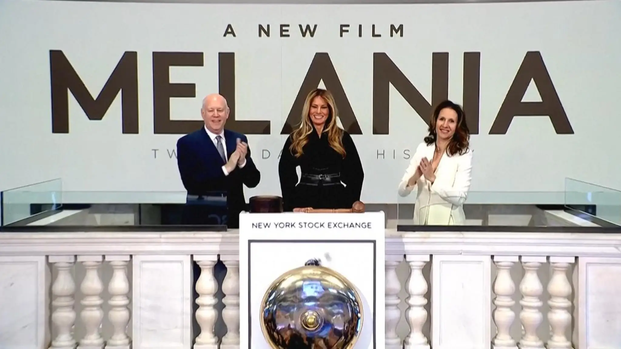 Melania Trump suona la campanella della Borsa per lanciare il film sulla sua vita
