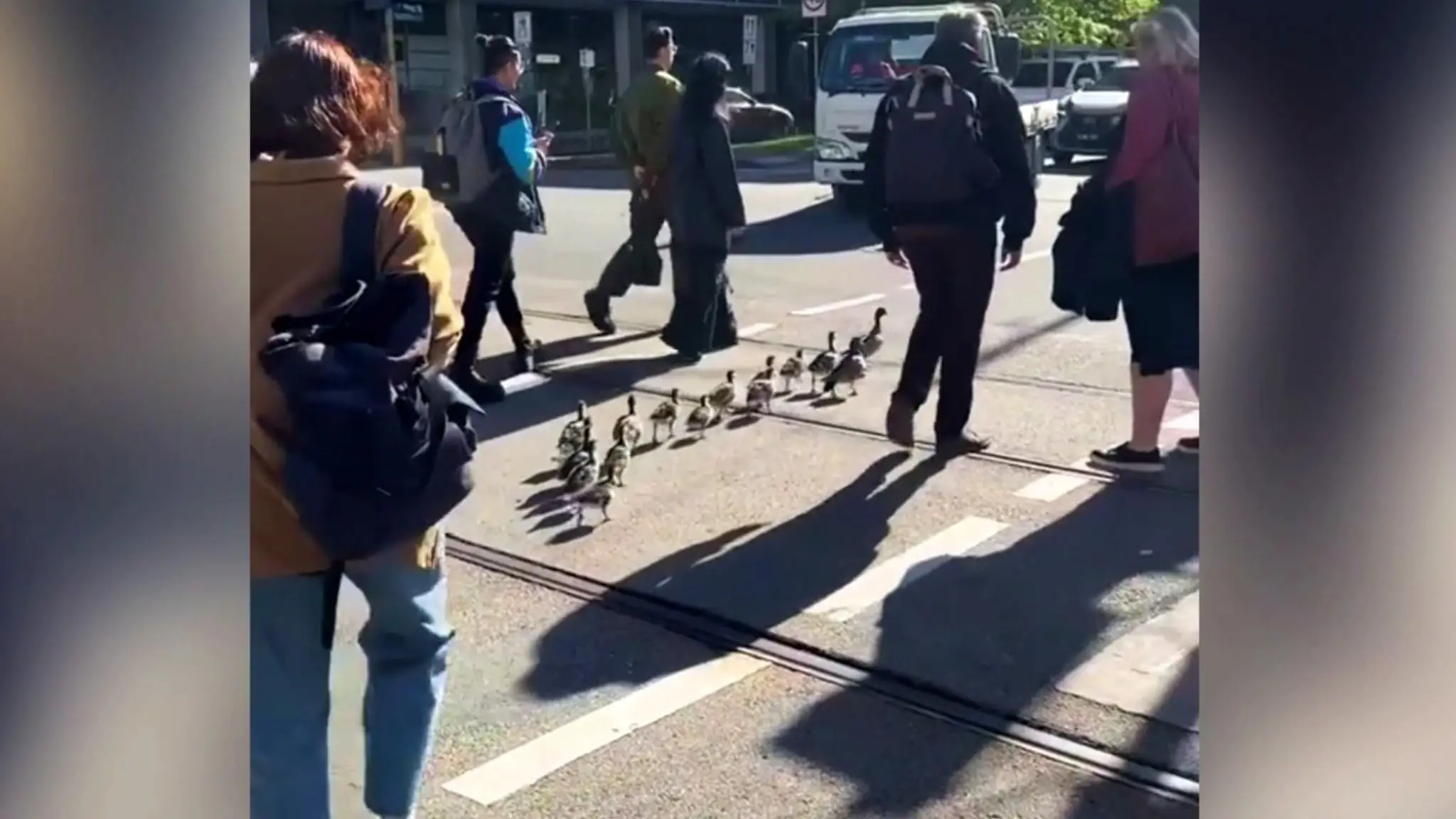 Melbourne, anatra e anatroccoli attraversano sulle strisce: i passanti fanno da scorta