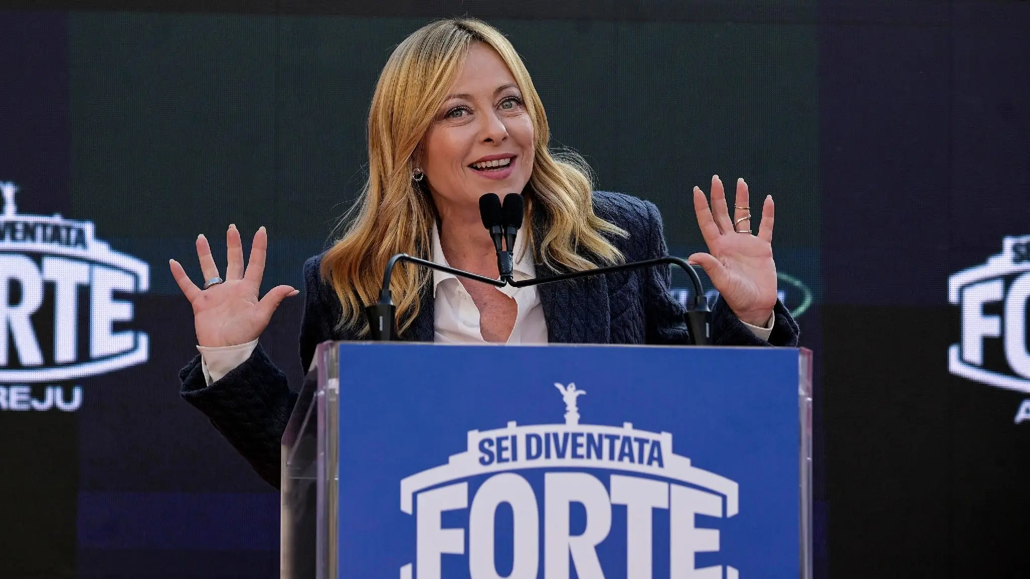 La leader di Fratelli d'Italia ha lanciato i suoi strali ironici e pungenti al centro-sinistra, sottolineando più volte l'assenza alla kermesse del suo partito della leader del Pd Schlein