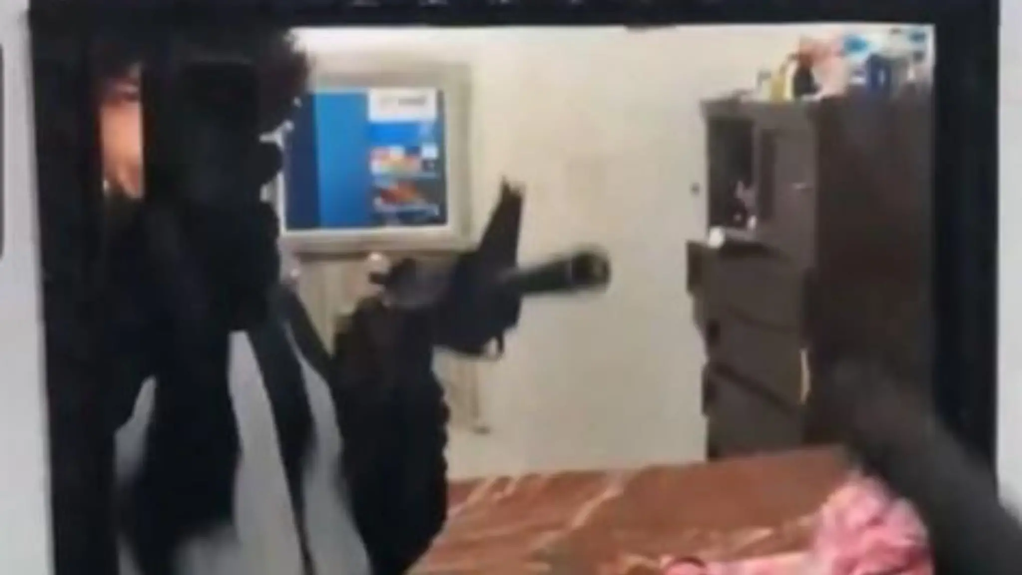 Nelle immagini si riprende davanti allo specchio con un fucile d'assalto in uso alle forze armate
