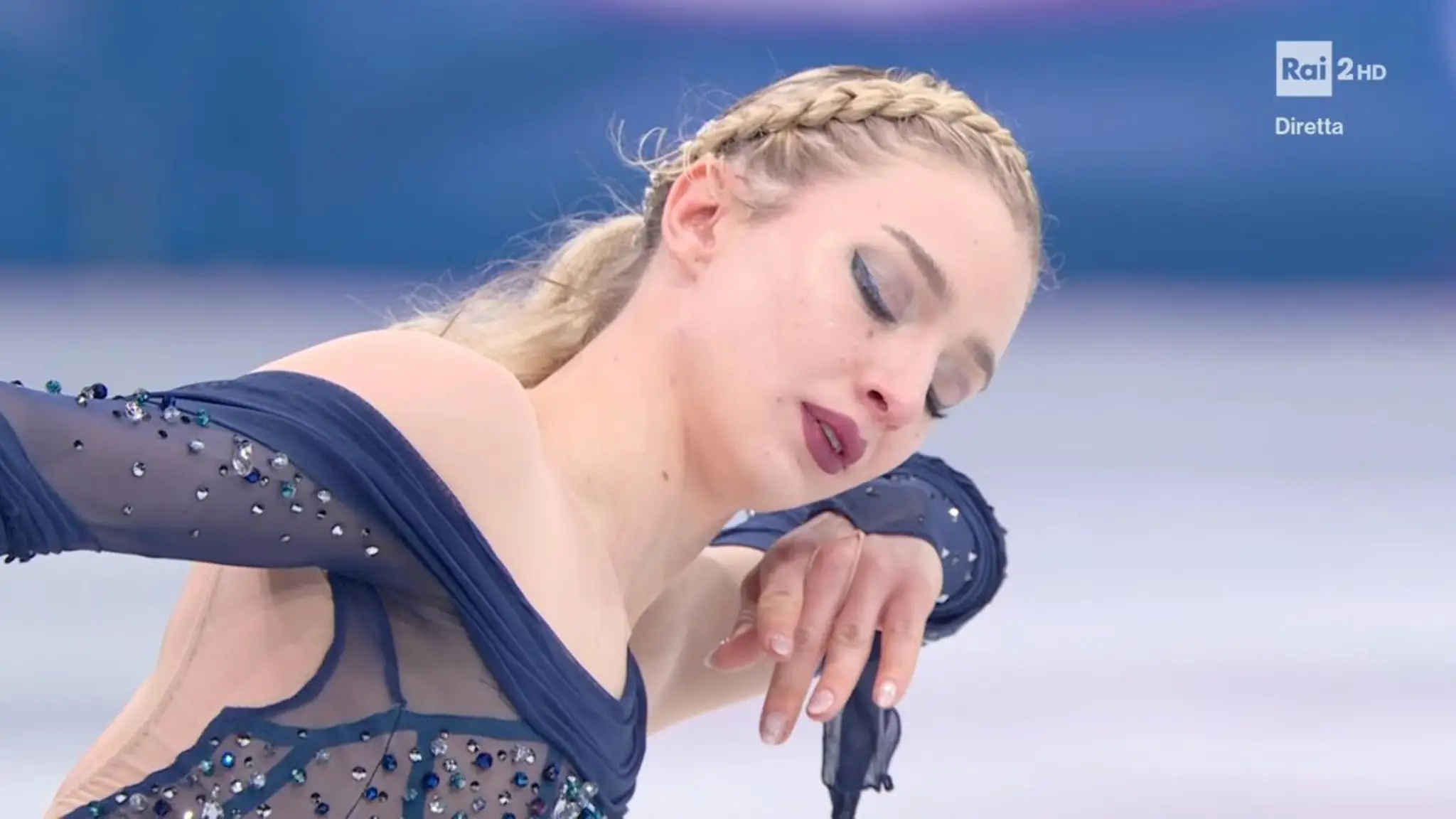 La campionessa statunitense di pattinaggio di figura si esibisce in una prova molto tecnica, ma sul salto più difficile si salva “con le unghie”