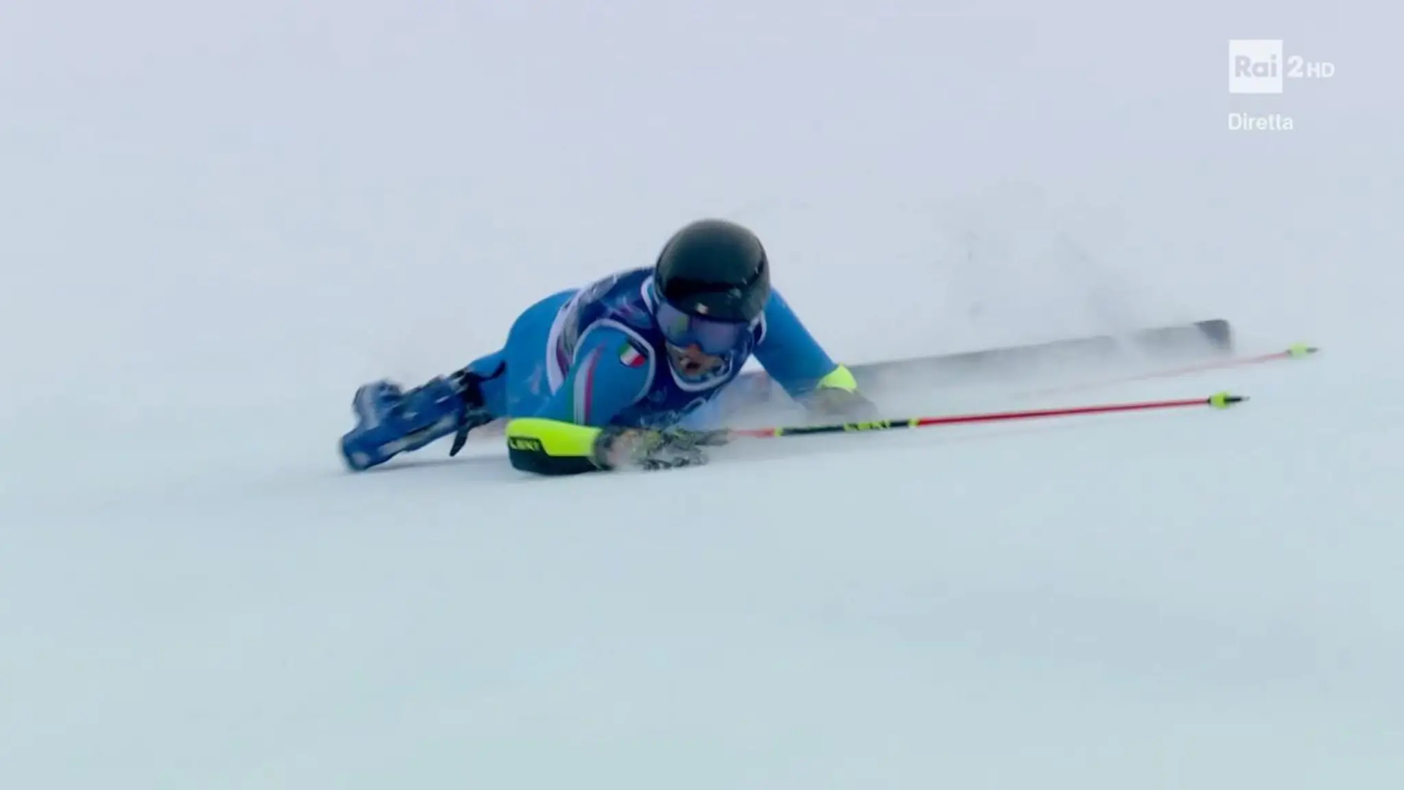 Milano Cortina, slalom gigante: De Aliprandini perde lo sci e non riesce a fermarsi (video)
