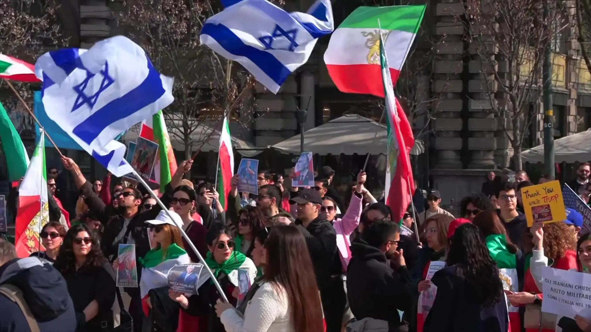 Milano, iraniani in piazza con bandiere USA: "Come l'Italia nel 1943"