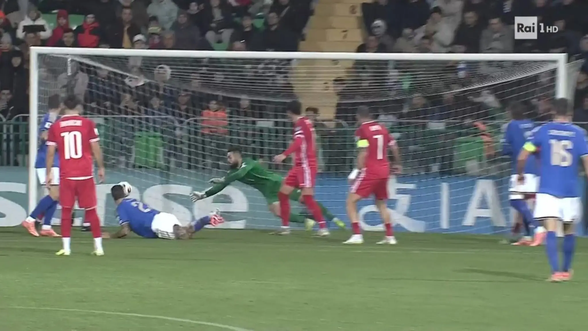 Gli Azzurri riescono a portare a casa i tre punti grazie alle marcature negli ultimi minuti di gioco. Qualche coro di contestazione da parte dei pochi tifosi italiani