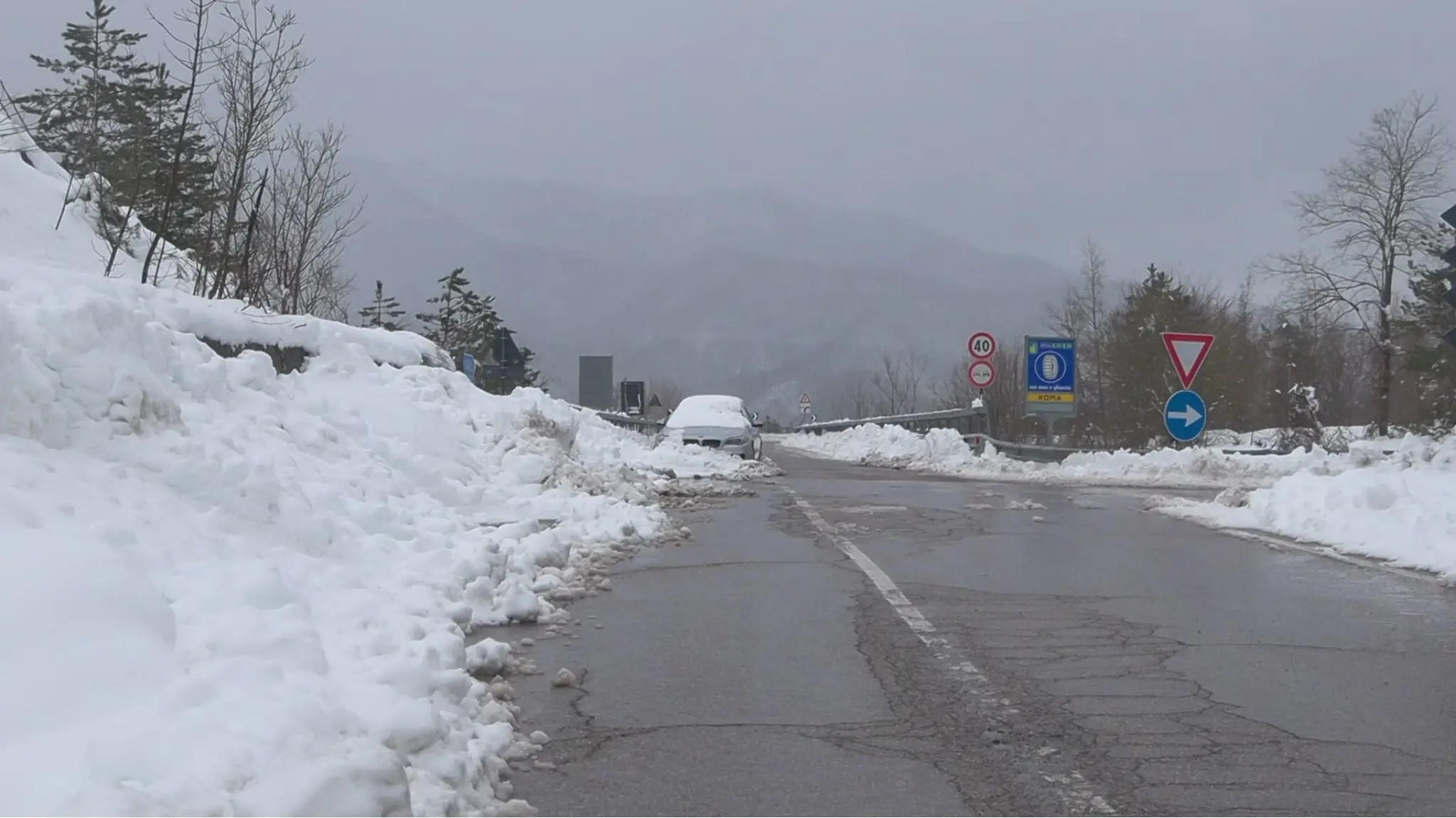 Neve in Romagna, auto abbandonata lungo la provinciale a Verghereto