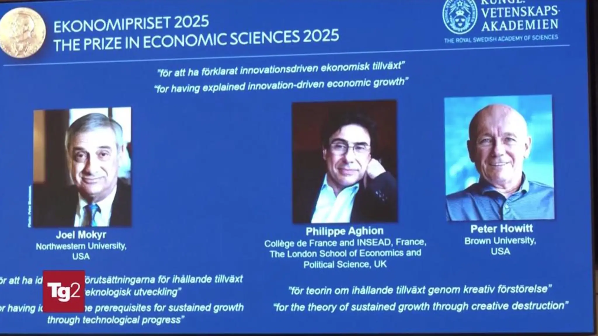 Il Premio Nobel per l'economia 2025 è andato a Joel Mokyr, Philippe Aghion e Peter Howitt per "aver spiegato la crescita economica guidata dall'innovazione"