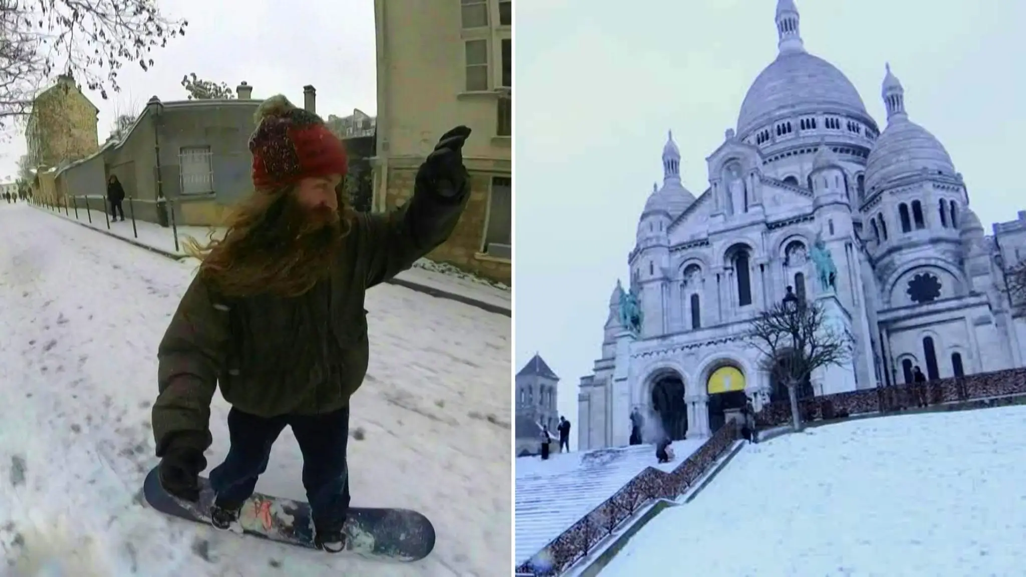 Parigi sotto la neve: la discesa in snowboard tra le vie di Montmartre