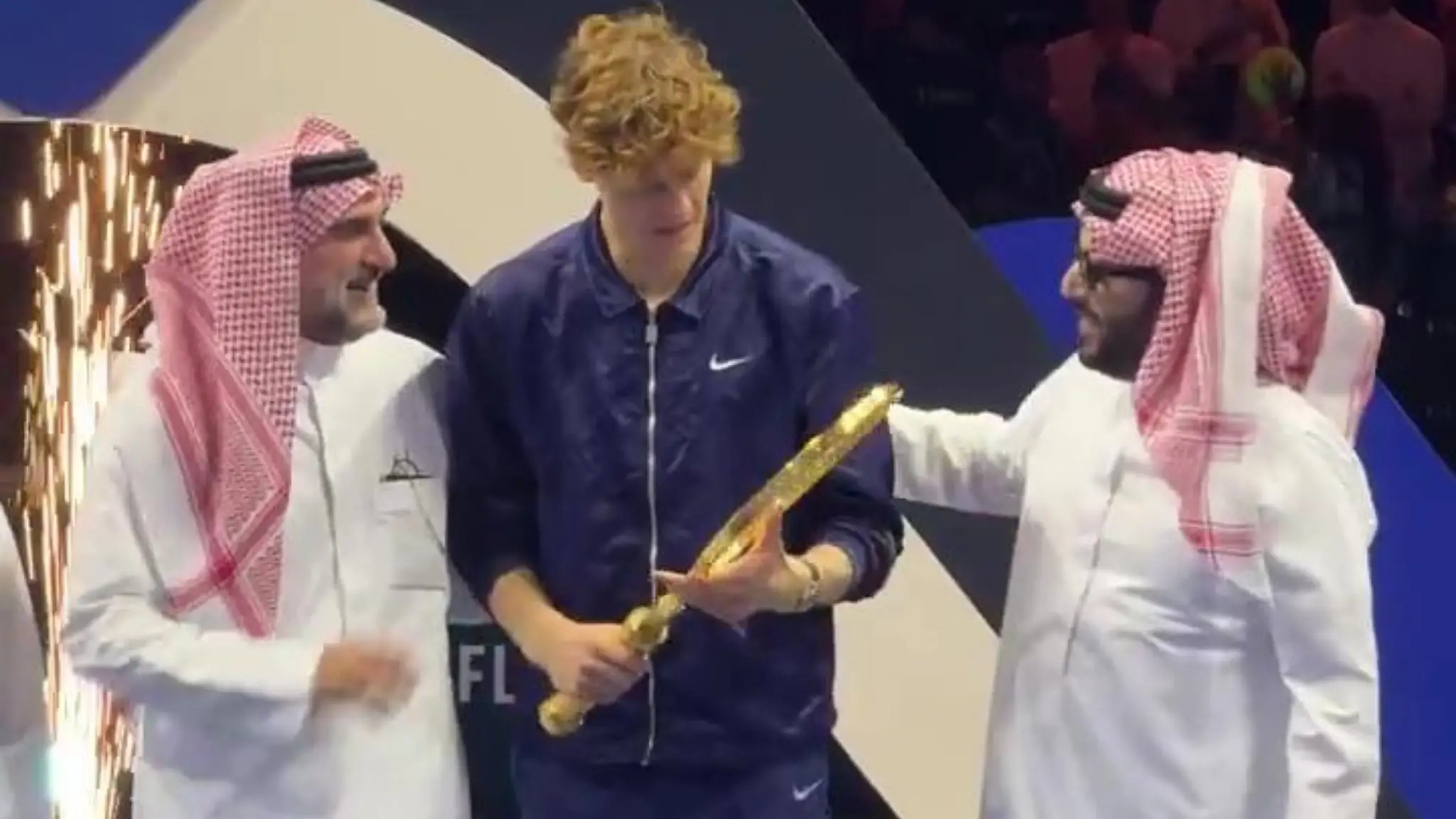 Premiazione di Sinner dopo la vittoria contro Alcaraz al Six Kings Slam di Riad