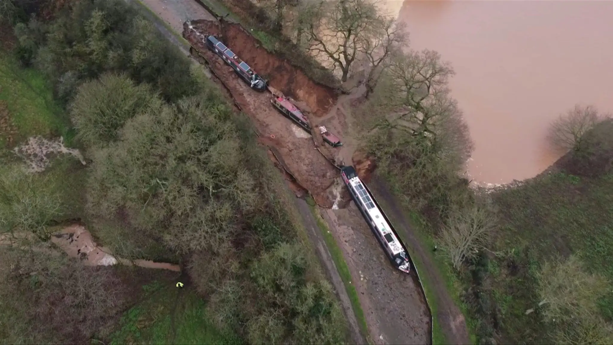 L'improvviso cedimento di un argine ha svuotato un canale nello Shropshire. Imbarcazioni fluviali trascinate nel vuoto: "Rumore come di un terremoto"