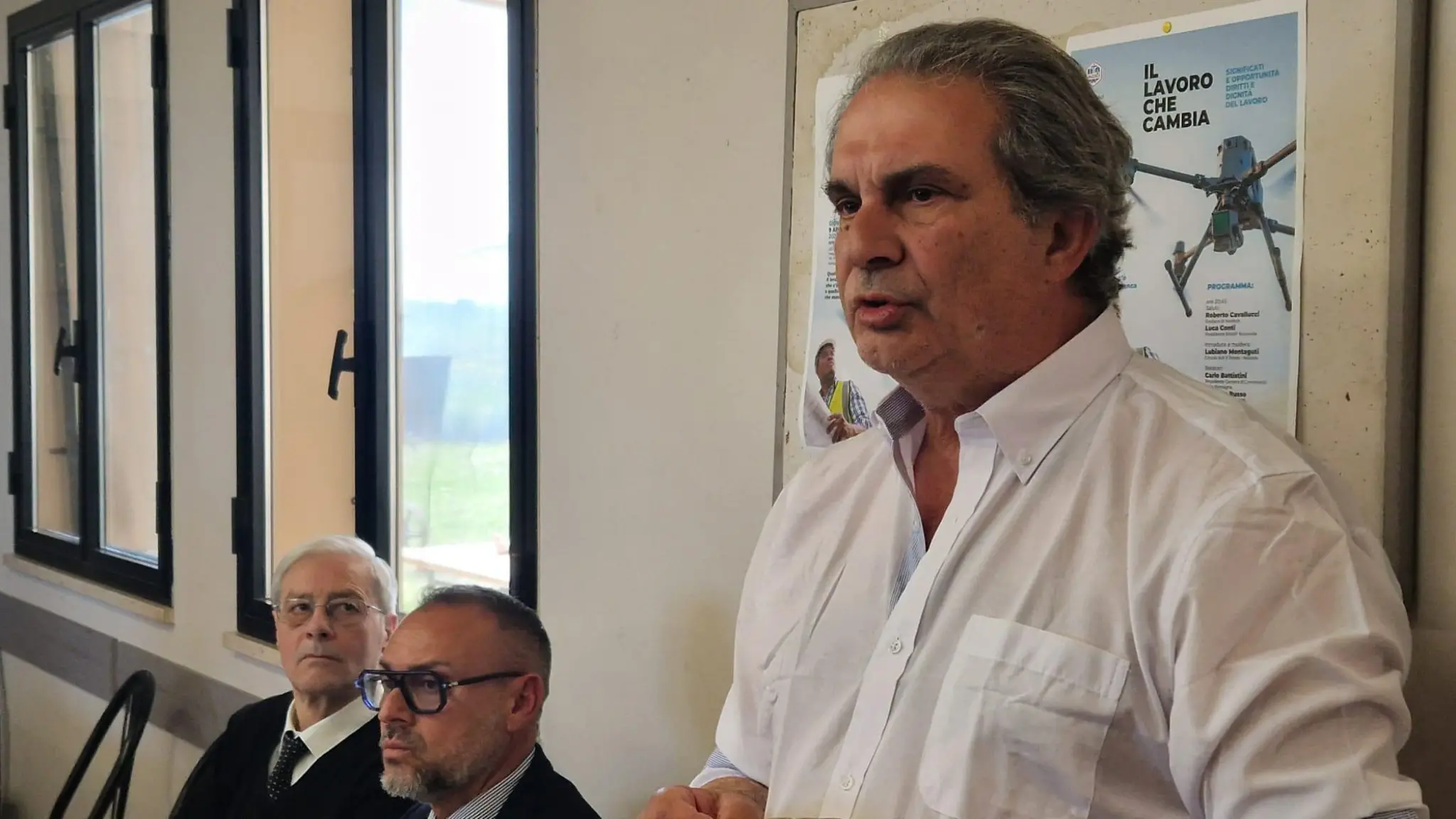 Alla fine il convegno c’è stato (circa un'ora dopo le previsioni) anche se non proprio a Predappio, ma nei pressi della Rocca delle Caminate. Era stata negata la sede richiesta delle gallerie Caproni