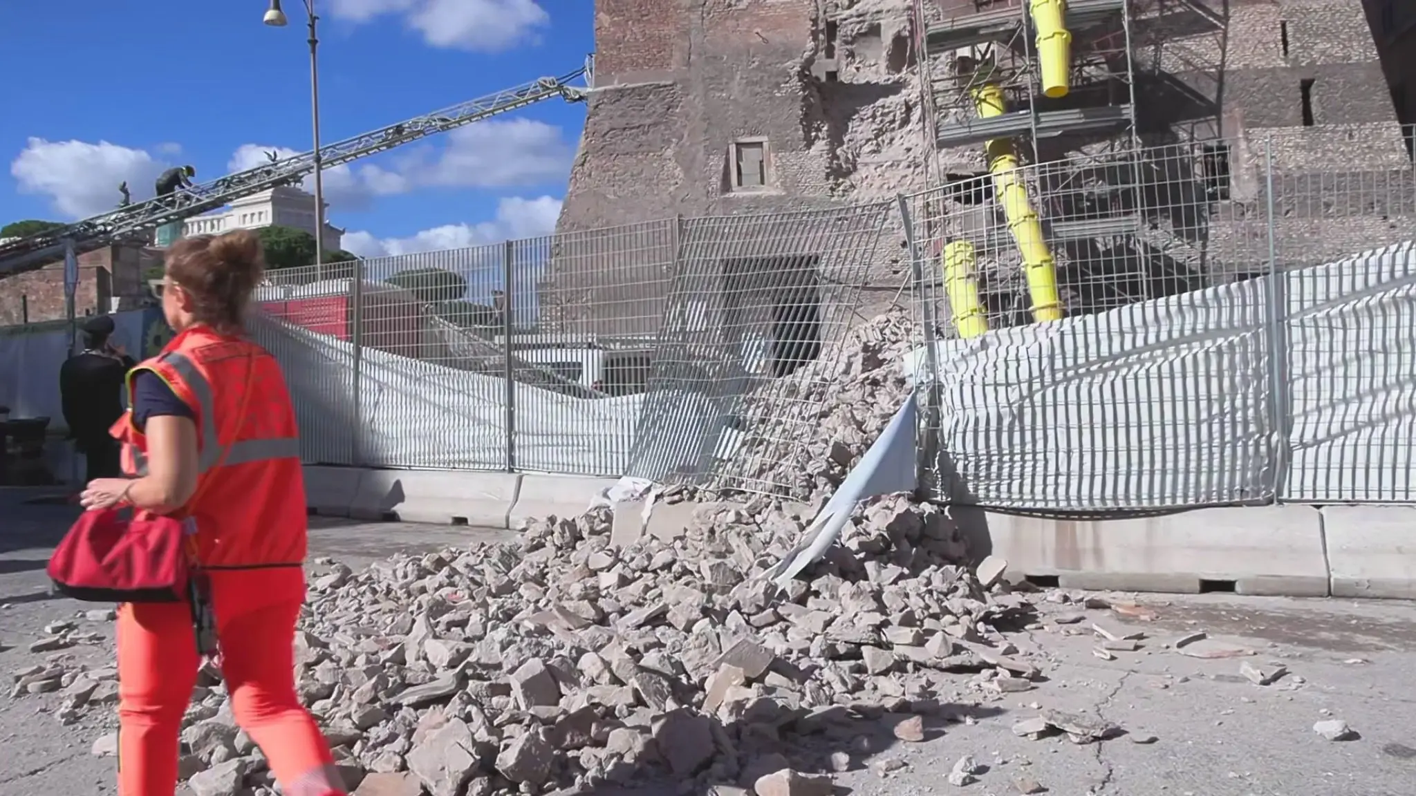 Roma, crolla parte della Torre dei Conti in ristrutturazione: in azione i vigili del fuoco