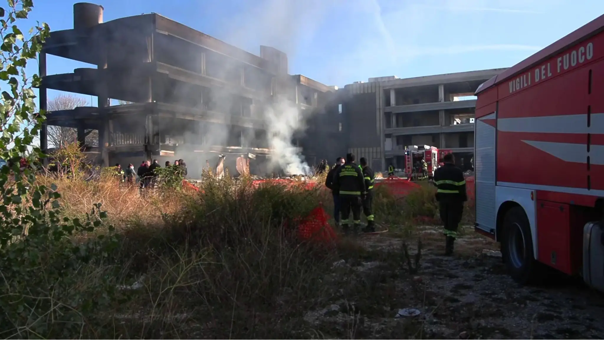 Roma, incendio in un edificio occupato a Tor Cervara, le operazioni di spegnimento