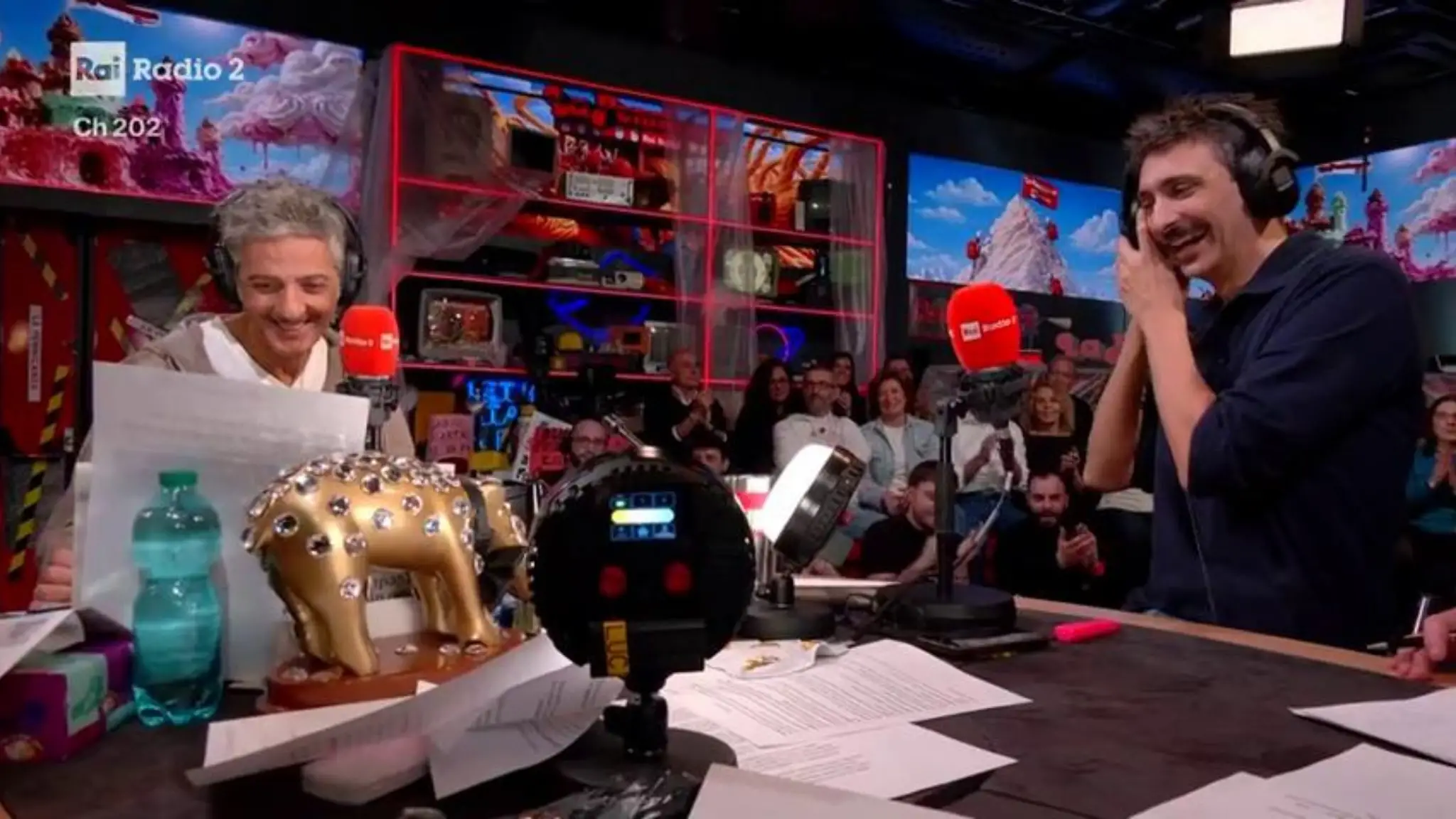 "Se succede, qua ci arrestano tutti! Ma io… ho le prove!!", scherza lo showman imitando Fabrizio Corona