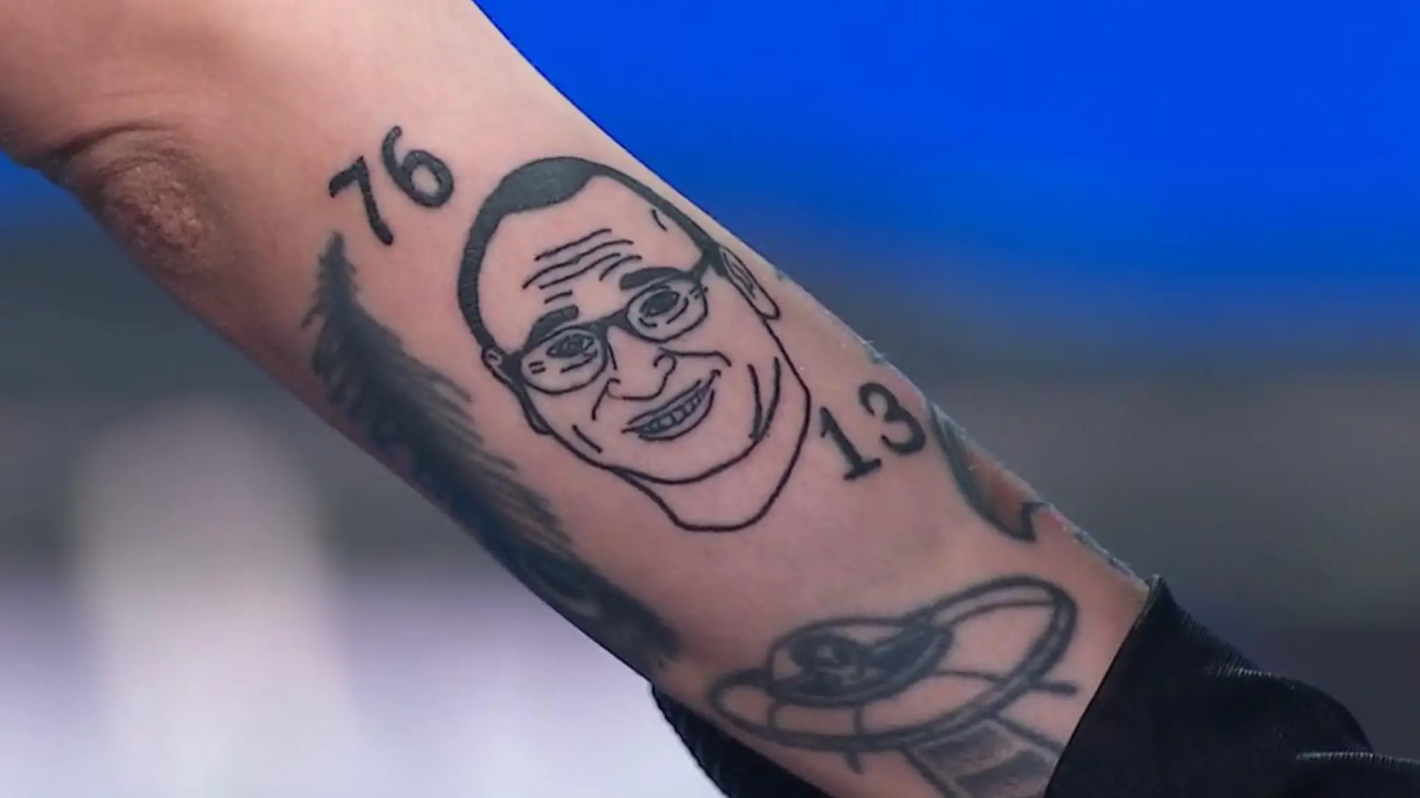 Sanremo Top, Cleo delle Bambole di Pezza mostra il tatuaggio con il volto di Carlo Conti