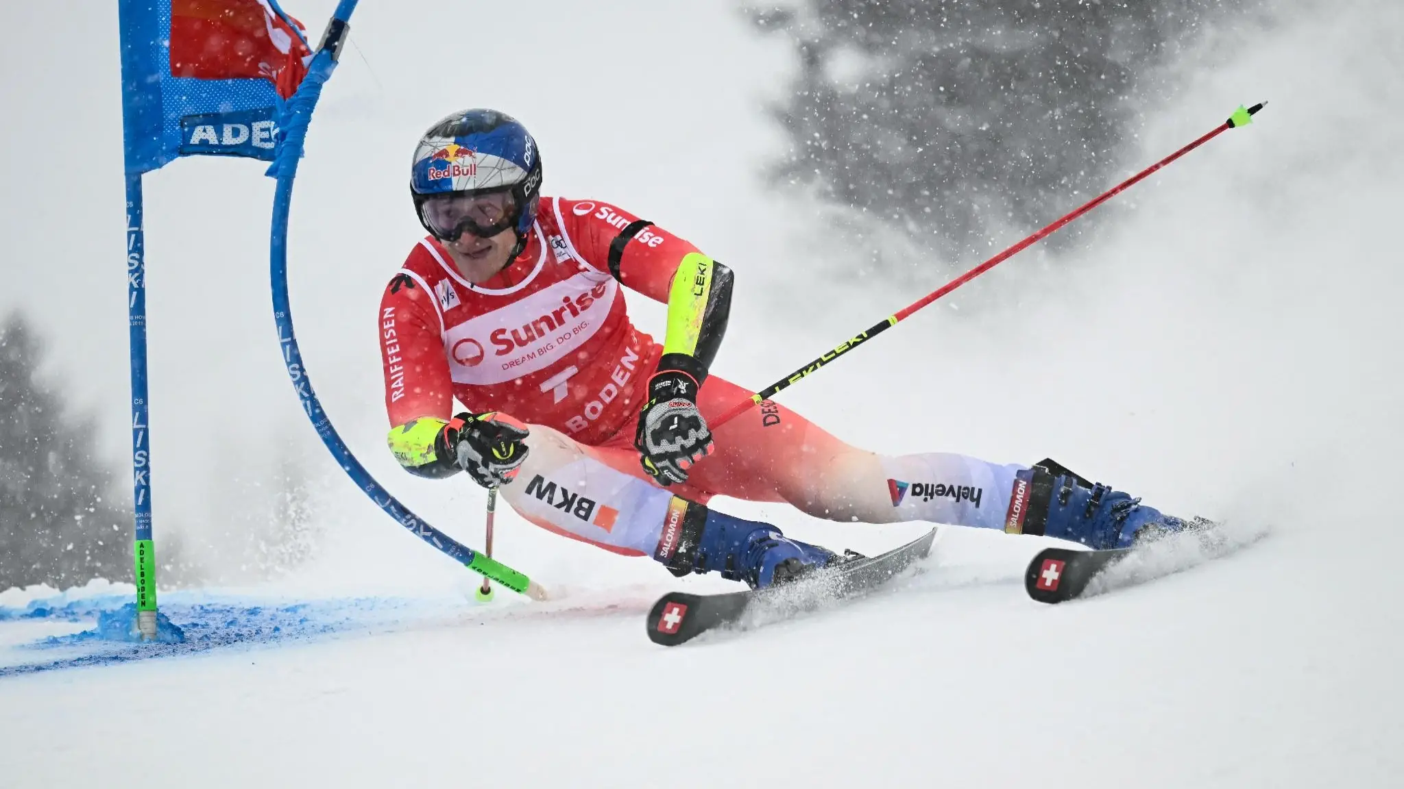 Odermatt vola in testa con 49 centesimi su Pinheiro Braathen. Impressionante il tifo del pubblico di casa