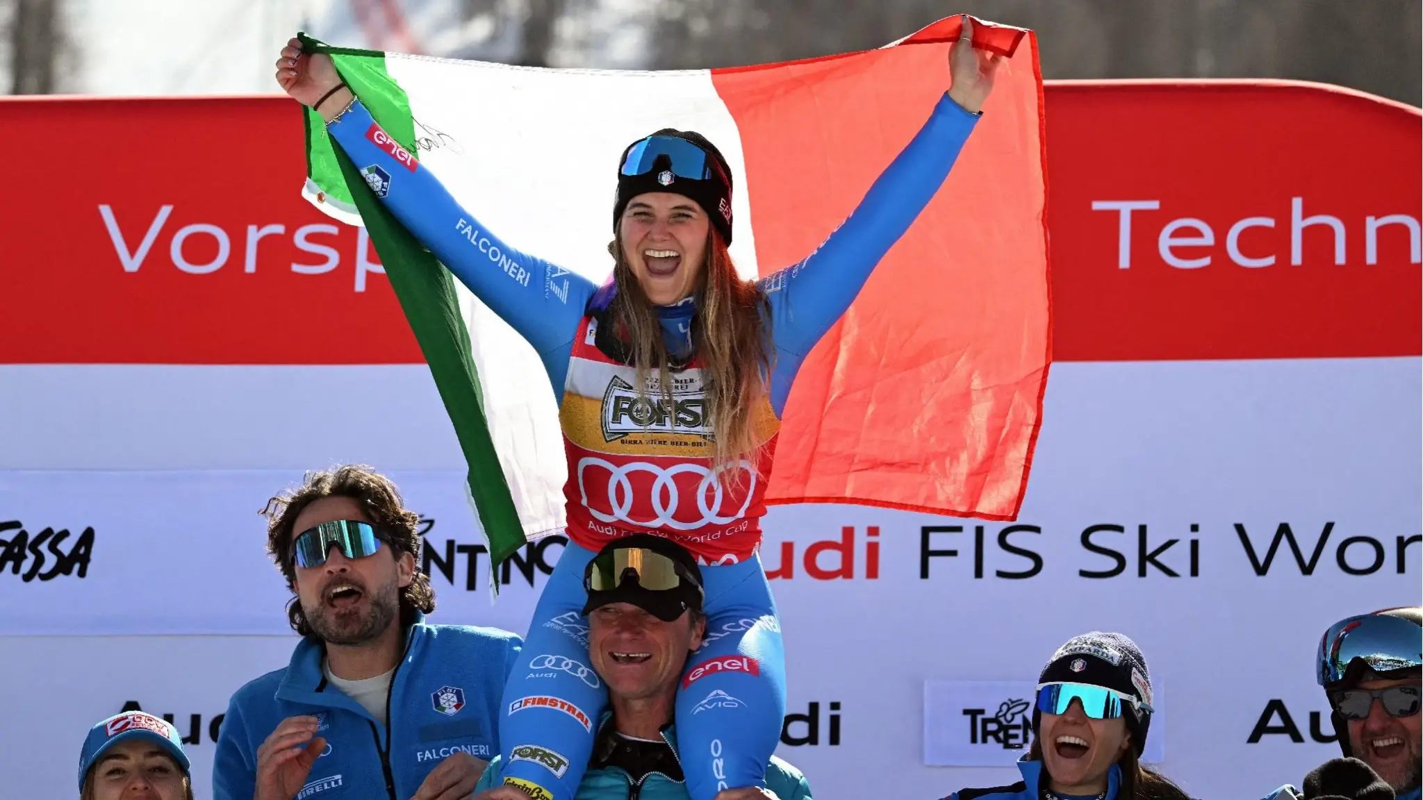 Tra le azzurre in pista anche Sofia Goggia e Nicol Delago. La vincitrice incredula dopo la doppietta nella discesa sulla pista di casa: "Troppo bello, pensavo fosse uno scherzo"