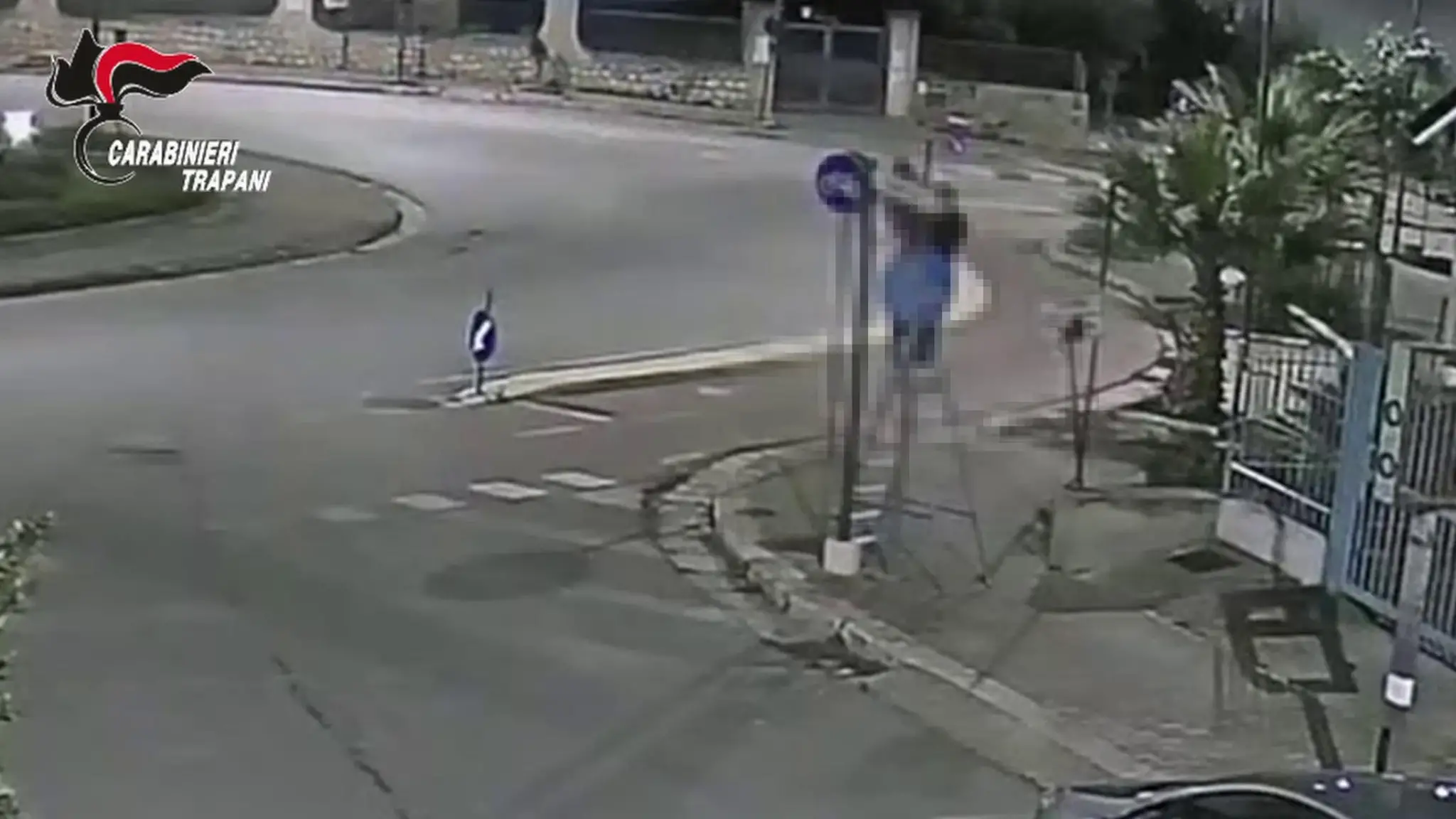 I carabinieri di Alcamo (Trapani) lo hanno prima filmato e poi denunciato a piede libero: è accusato del reato di omesso collocamento e rimozione di segnali stradali. L'uomo aveva con sé una scala e l'attrezzatura necessaria