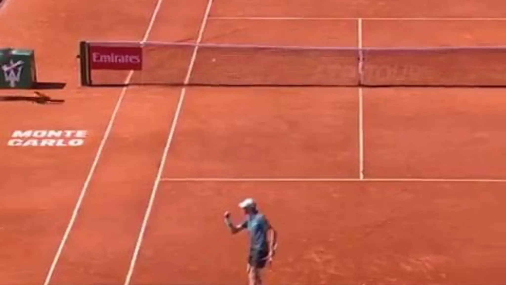 Sinner che grinta: lo scambio è velocissimo, palla di Machac sulla rete e vince il primo set