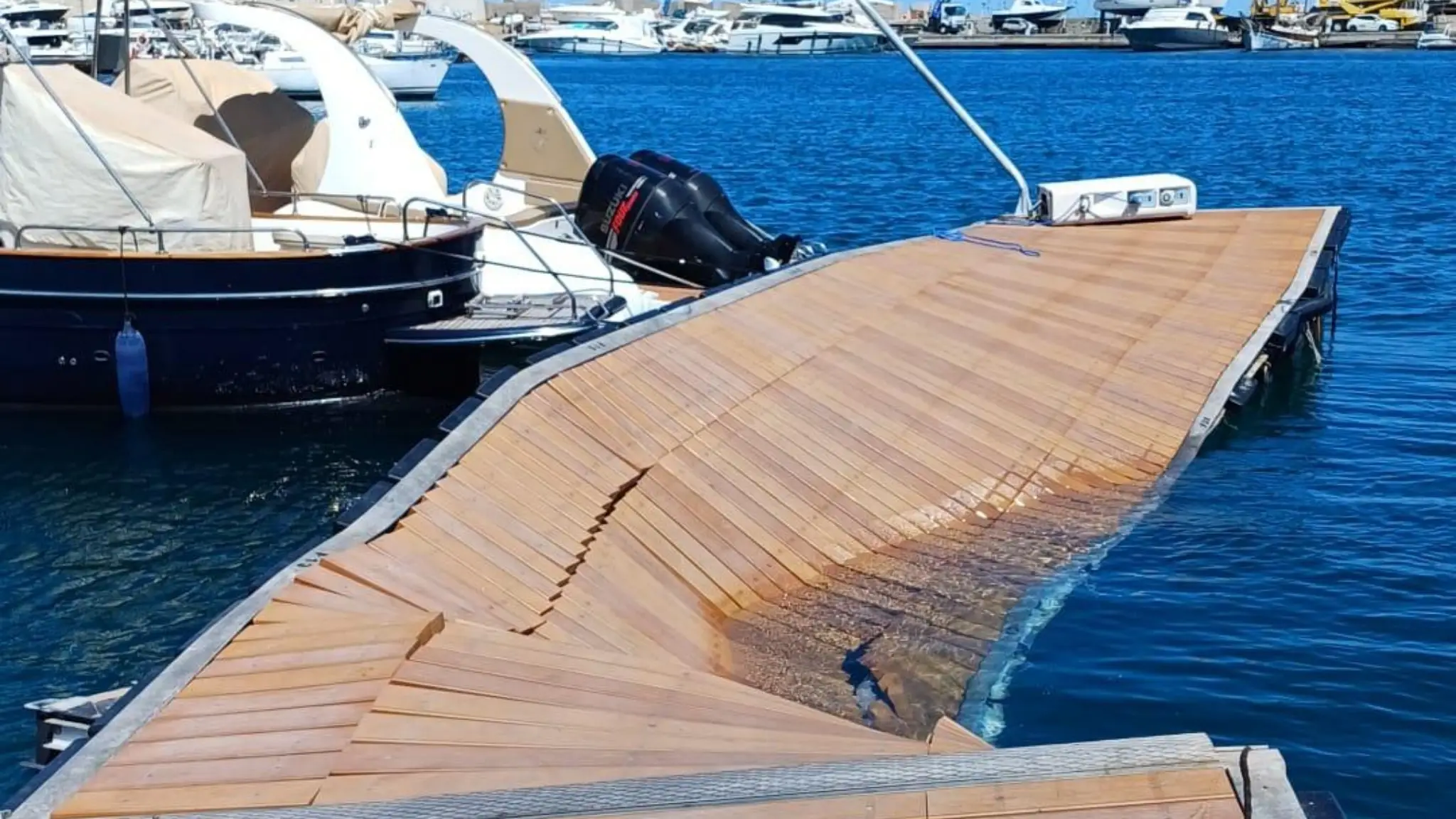 Paura tra i diportisti che cercavano di attirare l'attenzione del pilota. L'imbarcazione di 35 metri si schianta sul pontile galleggiante