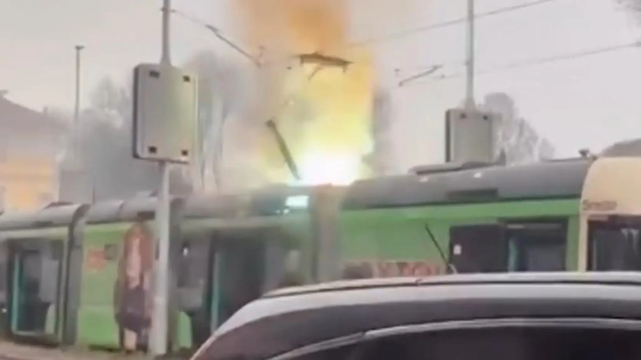 Tram in fiamme a Milano, le immagini riprese da un cellulare