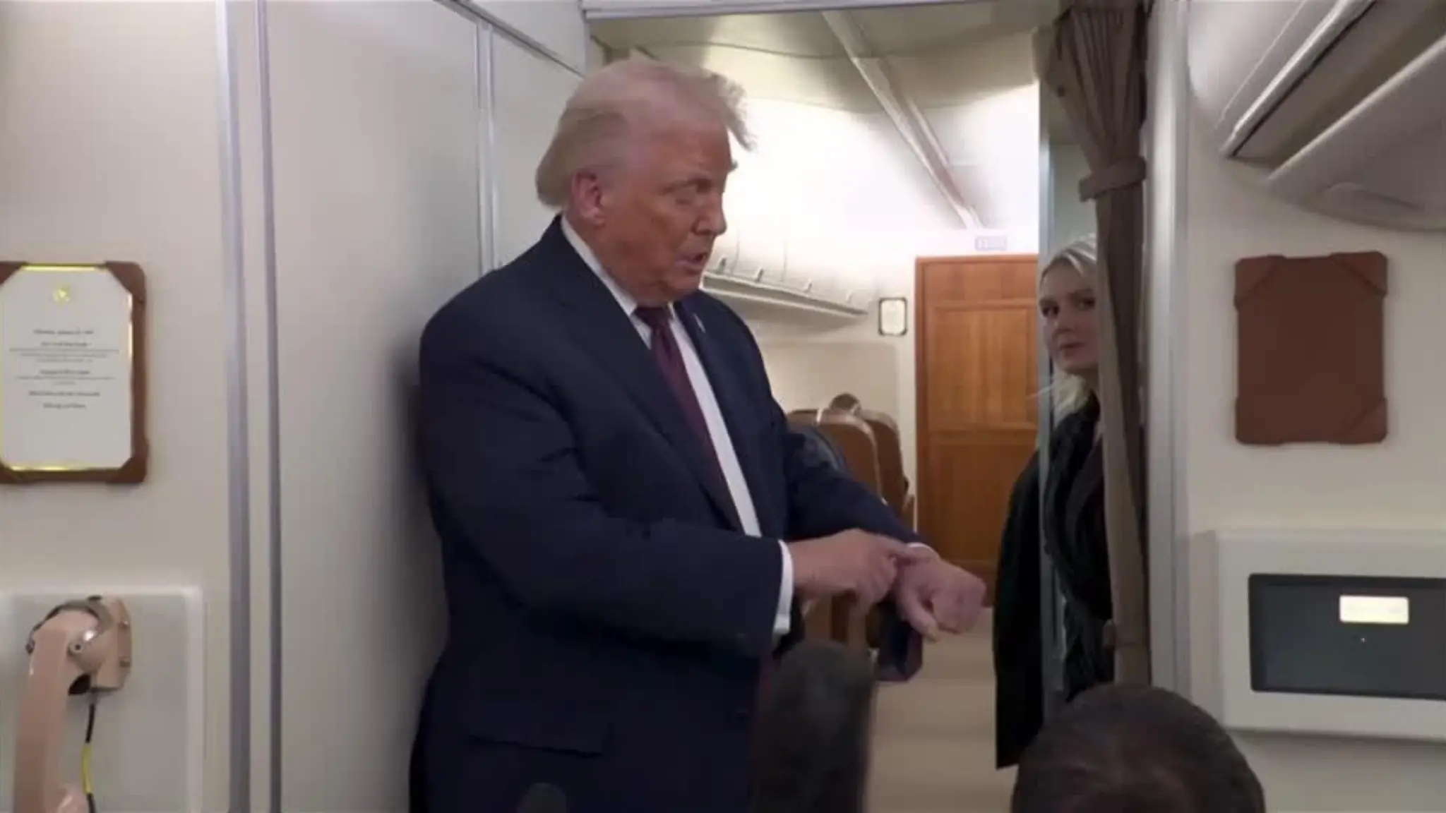 Parlando con i giornalisti sull’Air Force One, il presidente attribuisce il livido sulla mano sinistra a un urto accidentale e all’assunzione di aspirina.