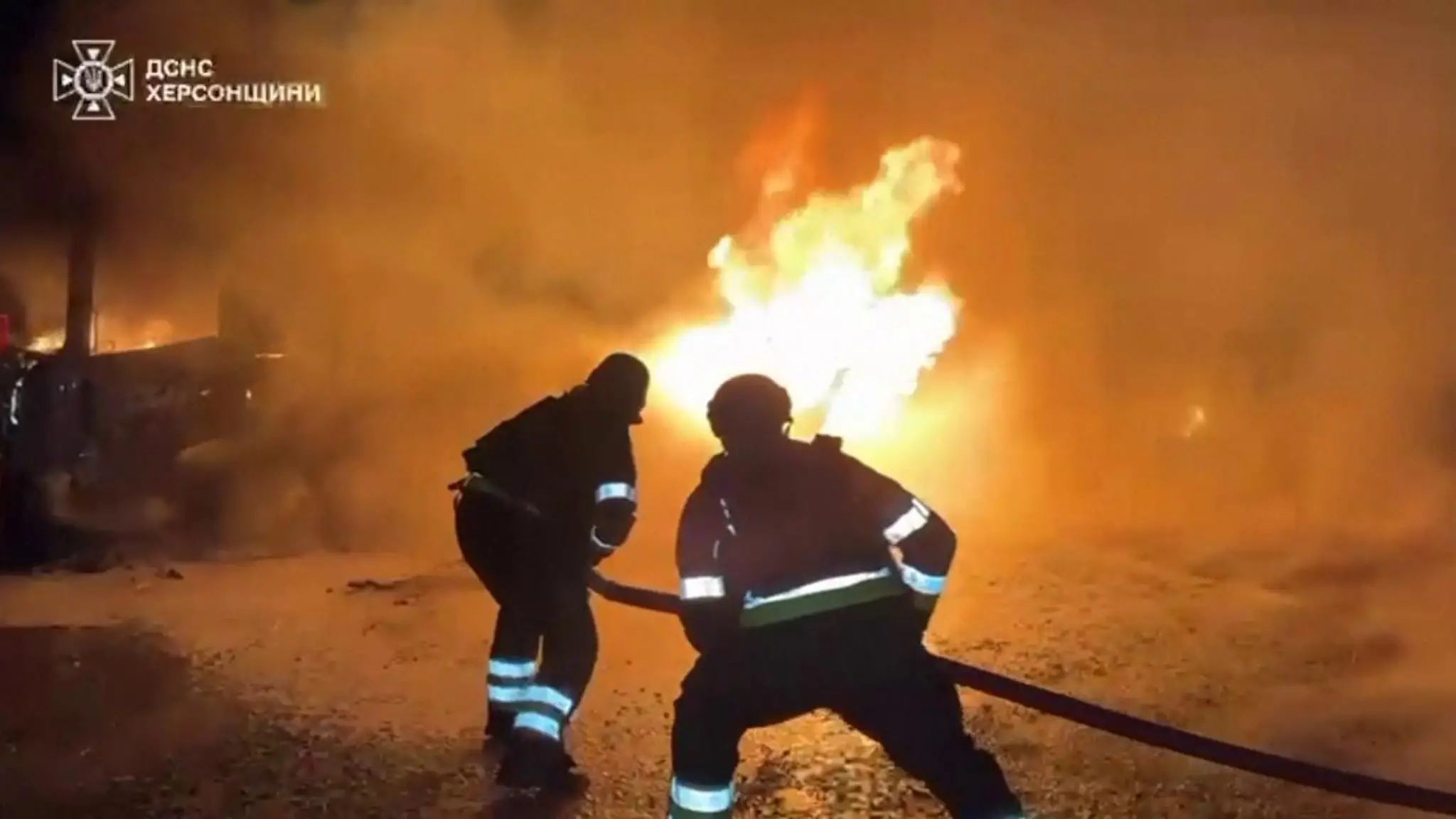 Ucraina: i vigili del fuoco intervengono dopo l'attacco di un drone a un'autocisterna