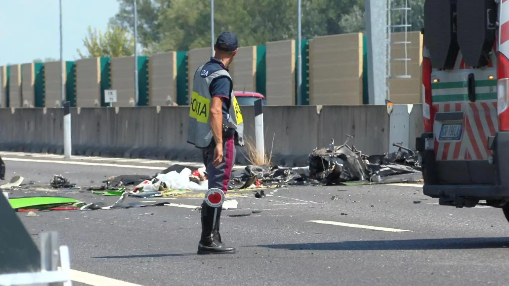 Ultraleggero precipitato: i rottami sulla strada