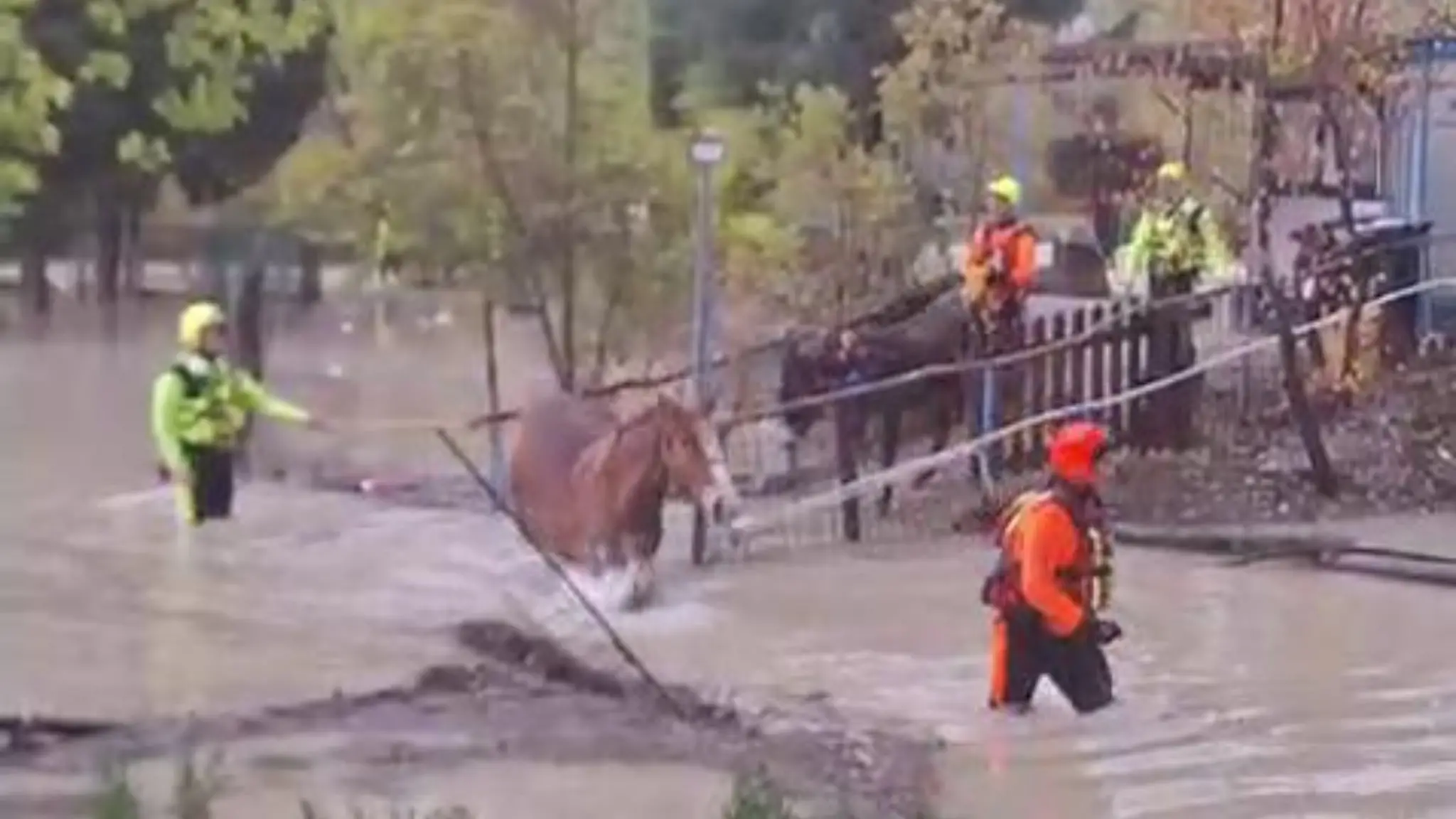 Un cavallo e un asino intrappolati nel recinto allagato salvati dalla furia del fiume Sangro