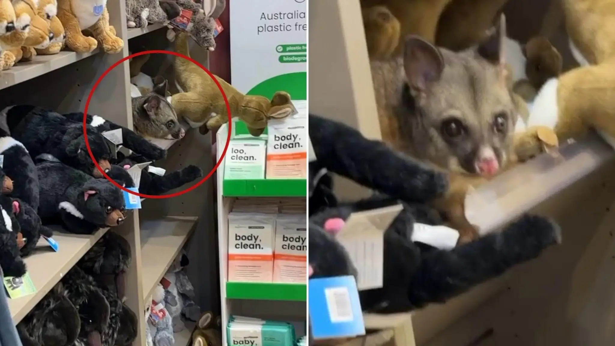 Un vero opossum spunta tra i peluche in un aeroporto australiano: il video