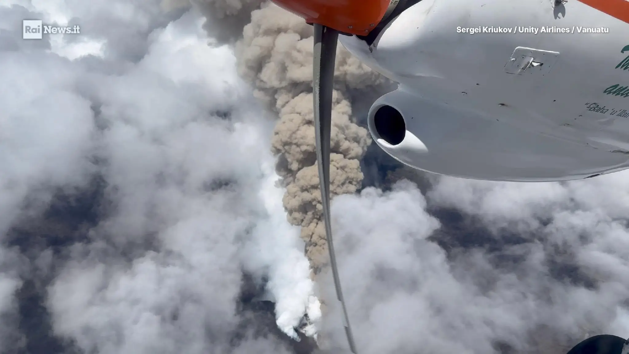 Vanuatu, aereo sorvola il vulcano durante l’eruzione: le immagini della colonna di cenere dal Manaro