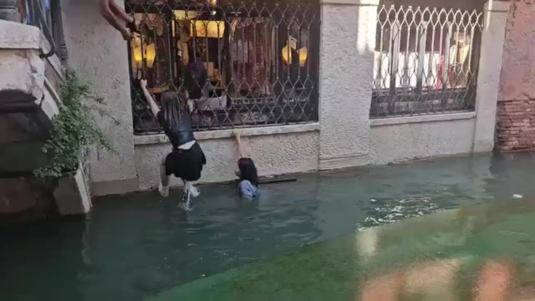 Venezia, la gondola si rovescia nel canale e i turisti si arrampicano su un ponte