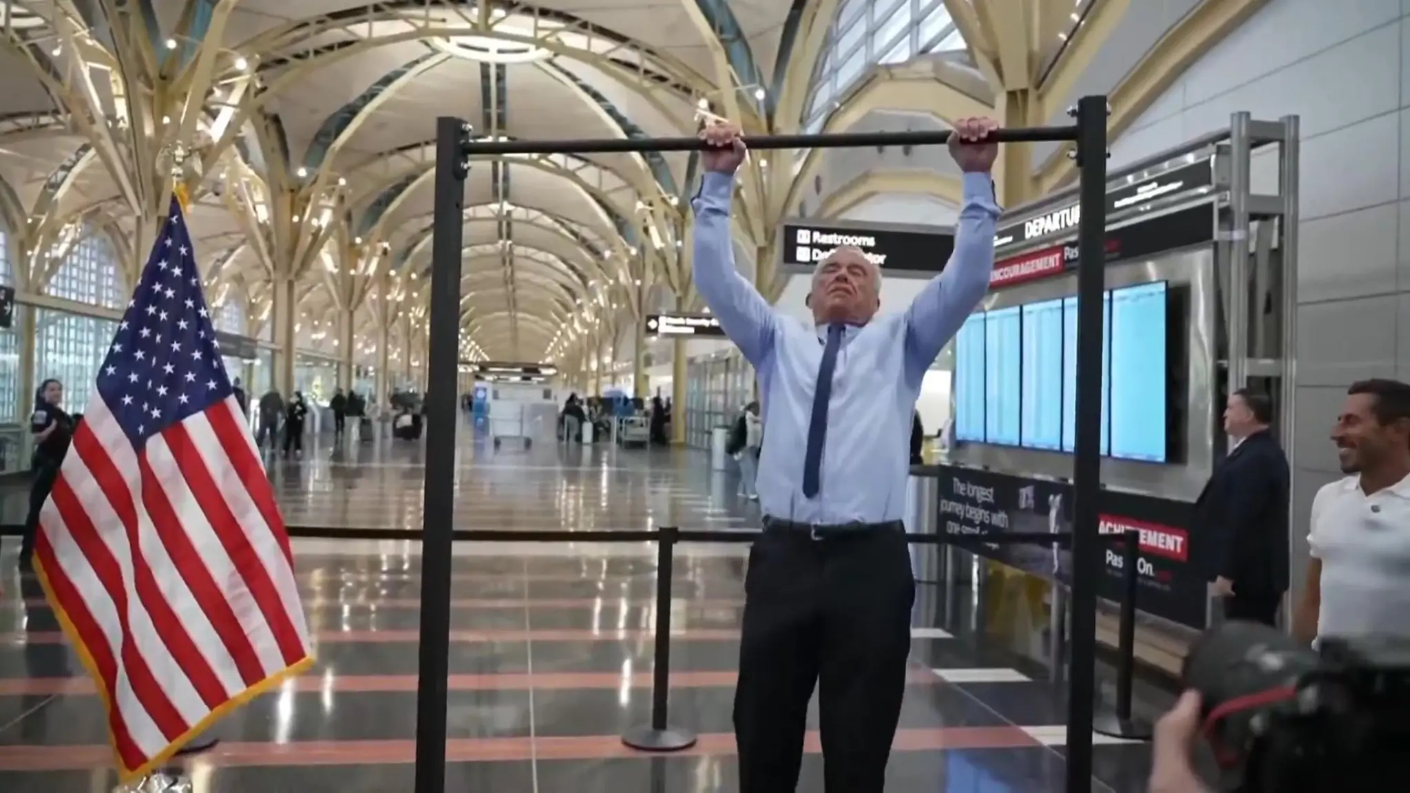 Venti trazioni in camicia e cravatta: la prodezza di Robert Kennedy Jr all'aeroporto