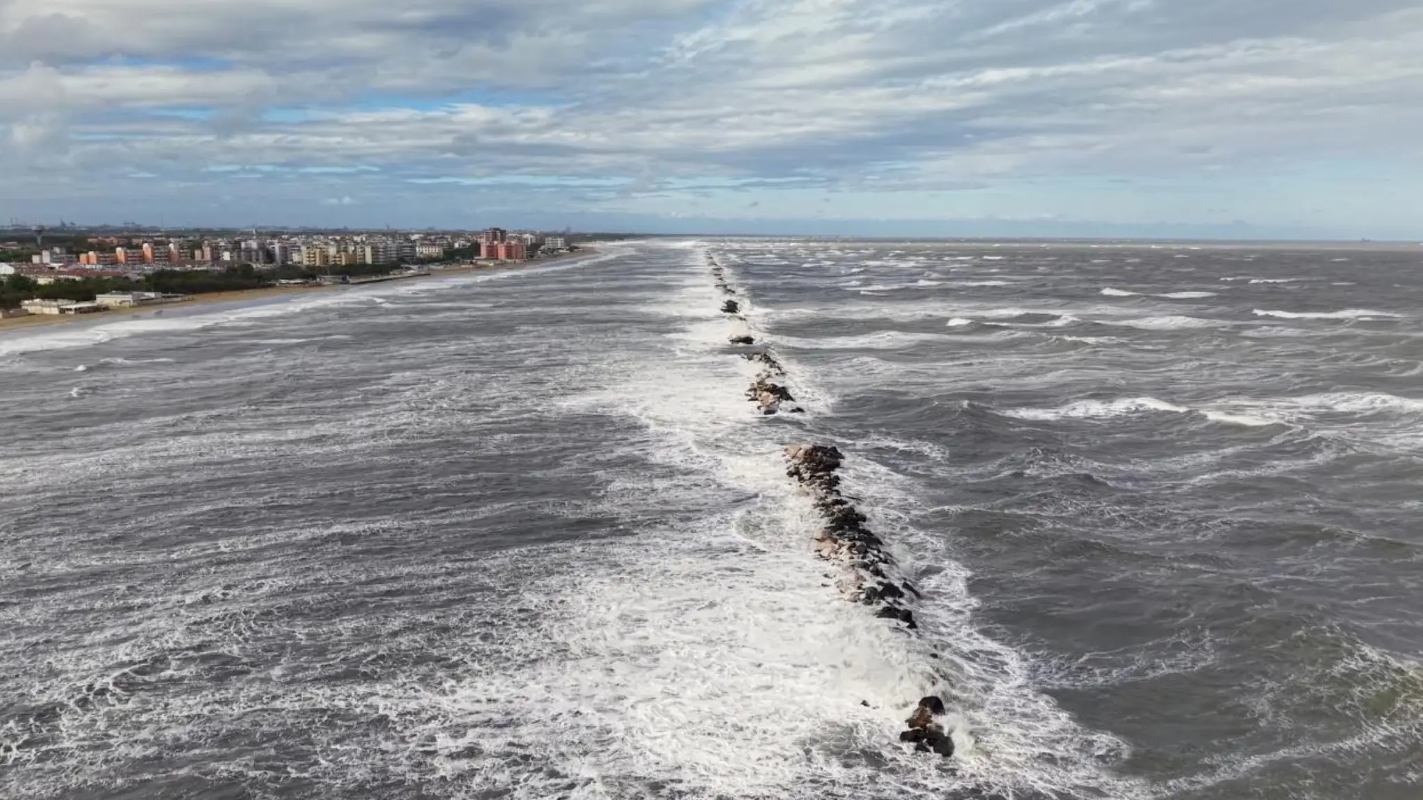 Le immagini girate lungo la costa mostrano onde significative e raffiche di vento