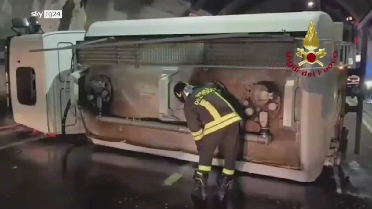 Leggi su Sky TG24 l'articolo A14, autobotte piena di gasolio si ribalta in galleria