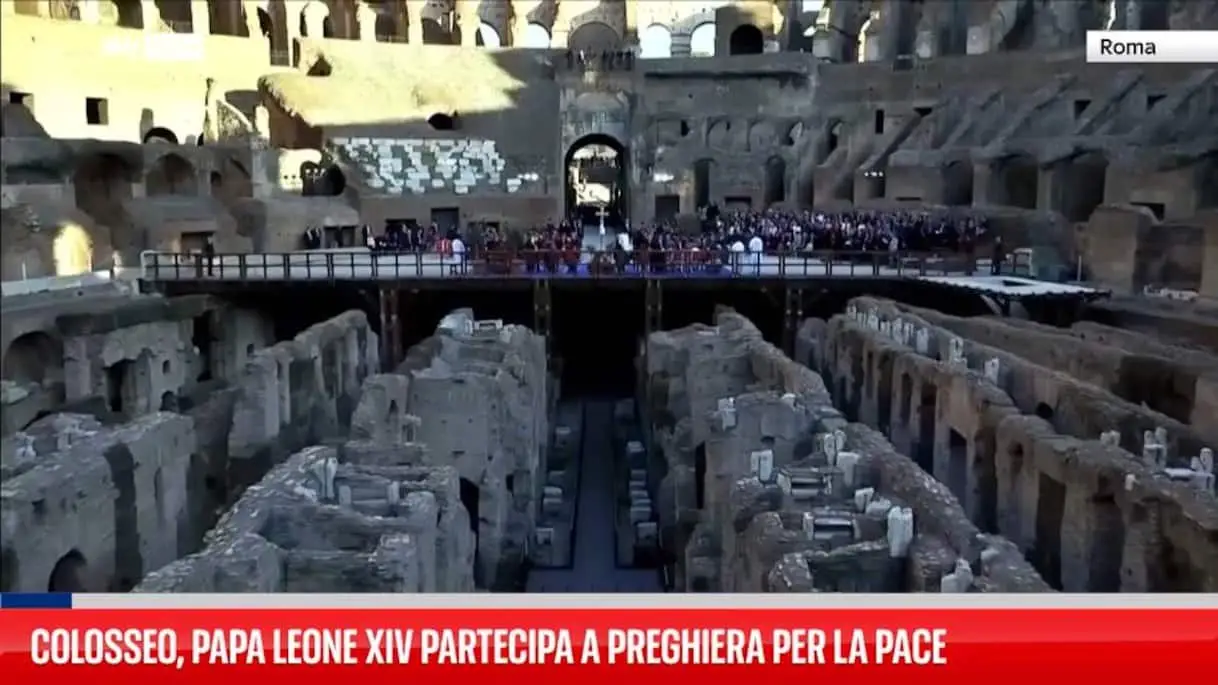 Colosseo, Papa Leone XIV partecipa a preghiera per la pace