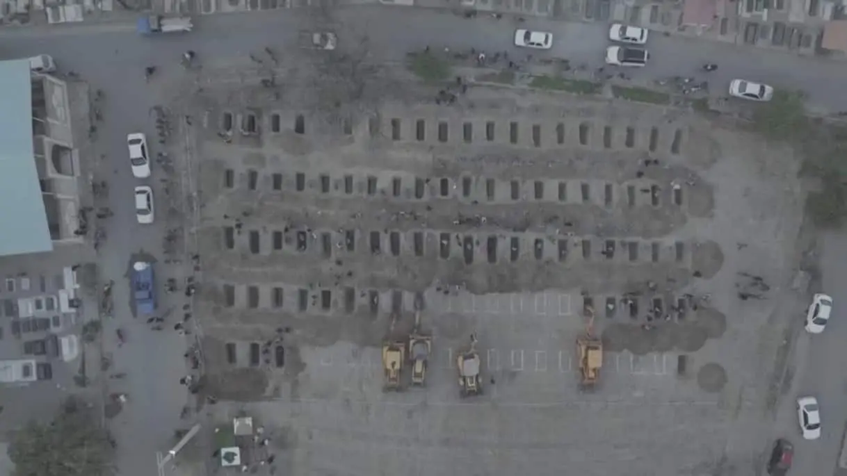 Drone mostra fossa comune per vittime di scuola in Iran