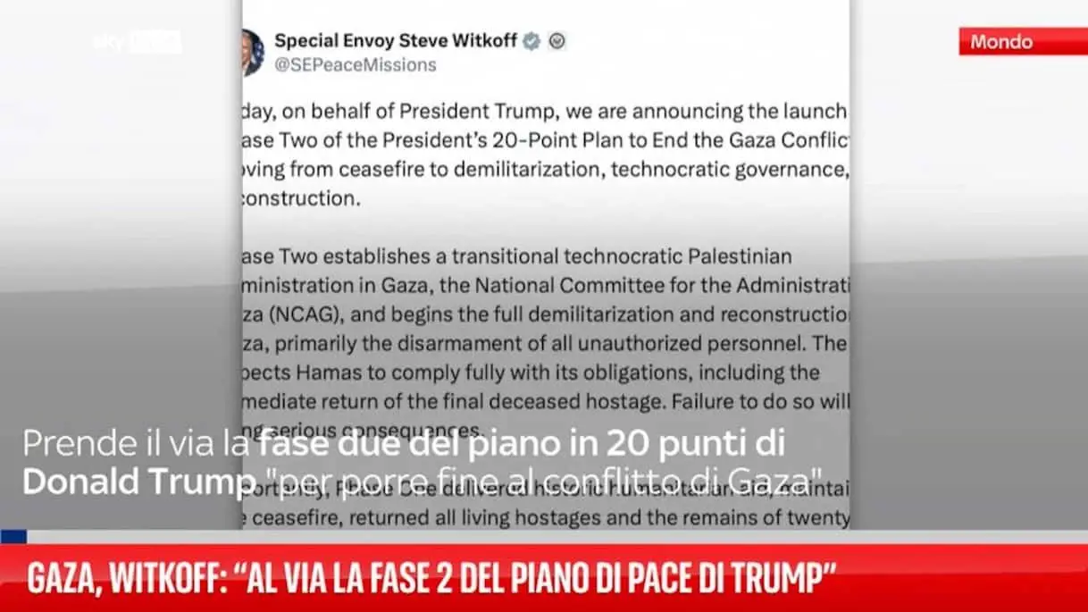 Leggi su Sky TG24 l'articolo Gaza, Witkoff: “Al via la fase 2 del piano di pace di Trump”