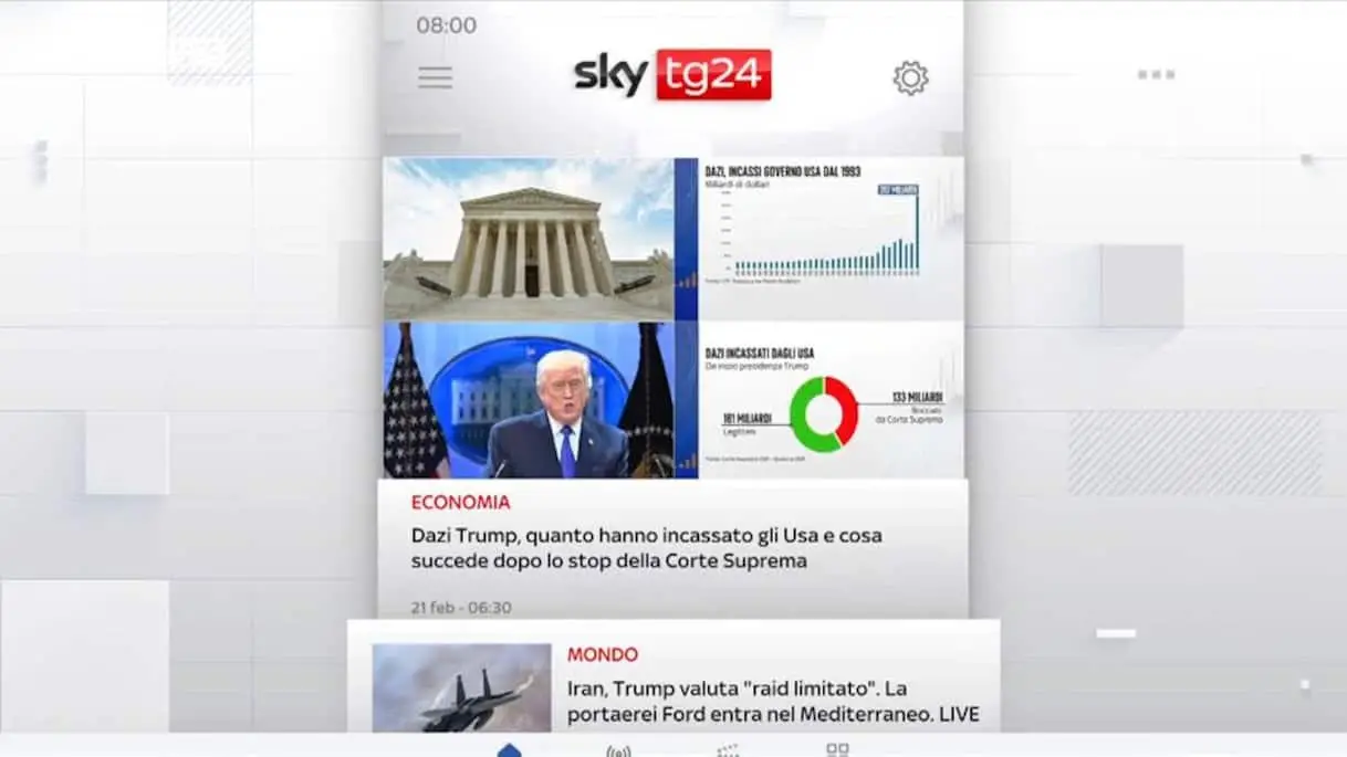 I titoli di Sky TG24 del 21 febbraio, edizione delle 8