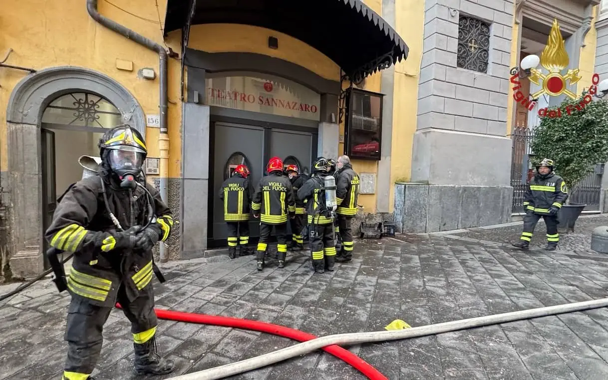 Incendio teatro Sannazaro a Napoli, l'intervento dei vigili del fuoco