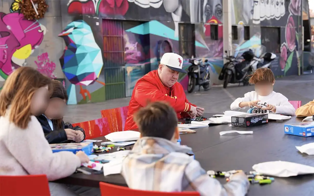 Jake La Furia costruisce veicoli Lego con i bambini a Milano