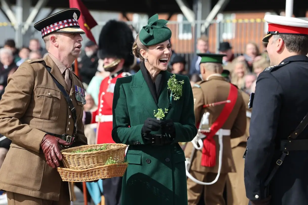 Per la festività irlandese, Middleton ha indossato i colori rappresentativi del Paese e ha distribuito i rametti di trifoglio ai partecipanti …