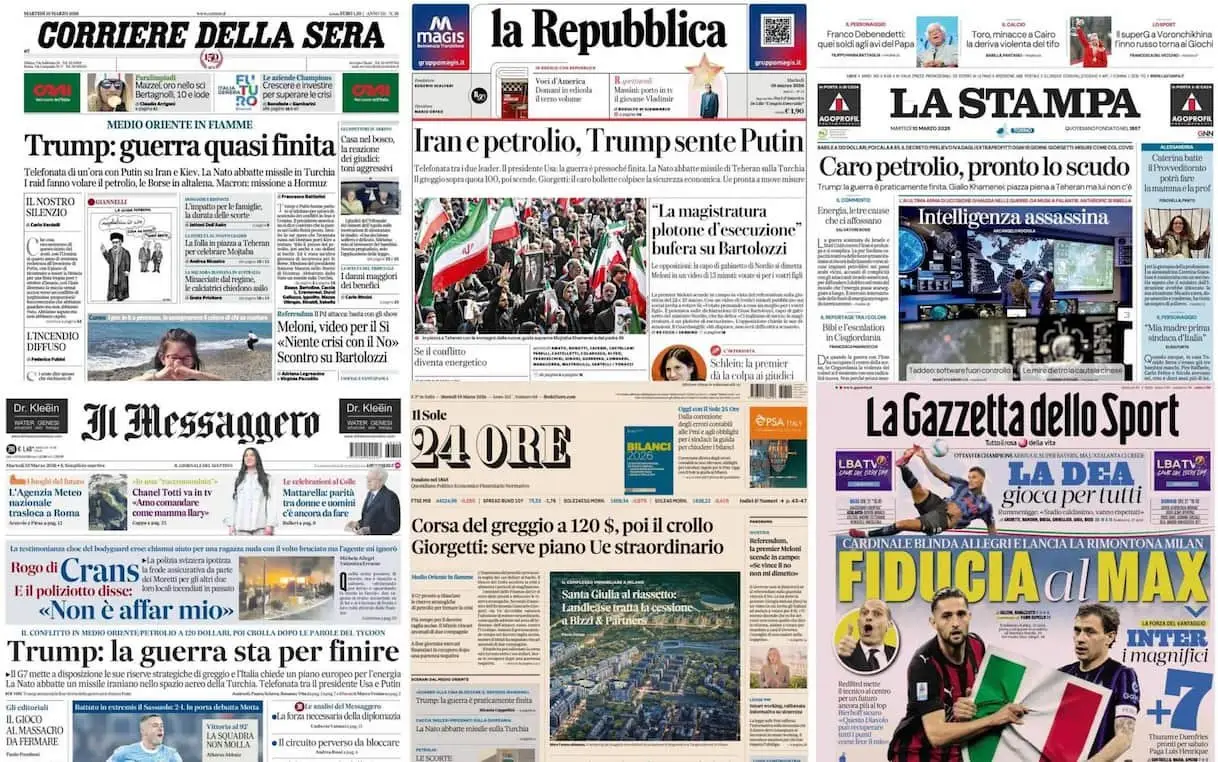 Le prime pagine dei quotidiani di oggi 10 marzo: la rassegna stampa
