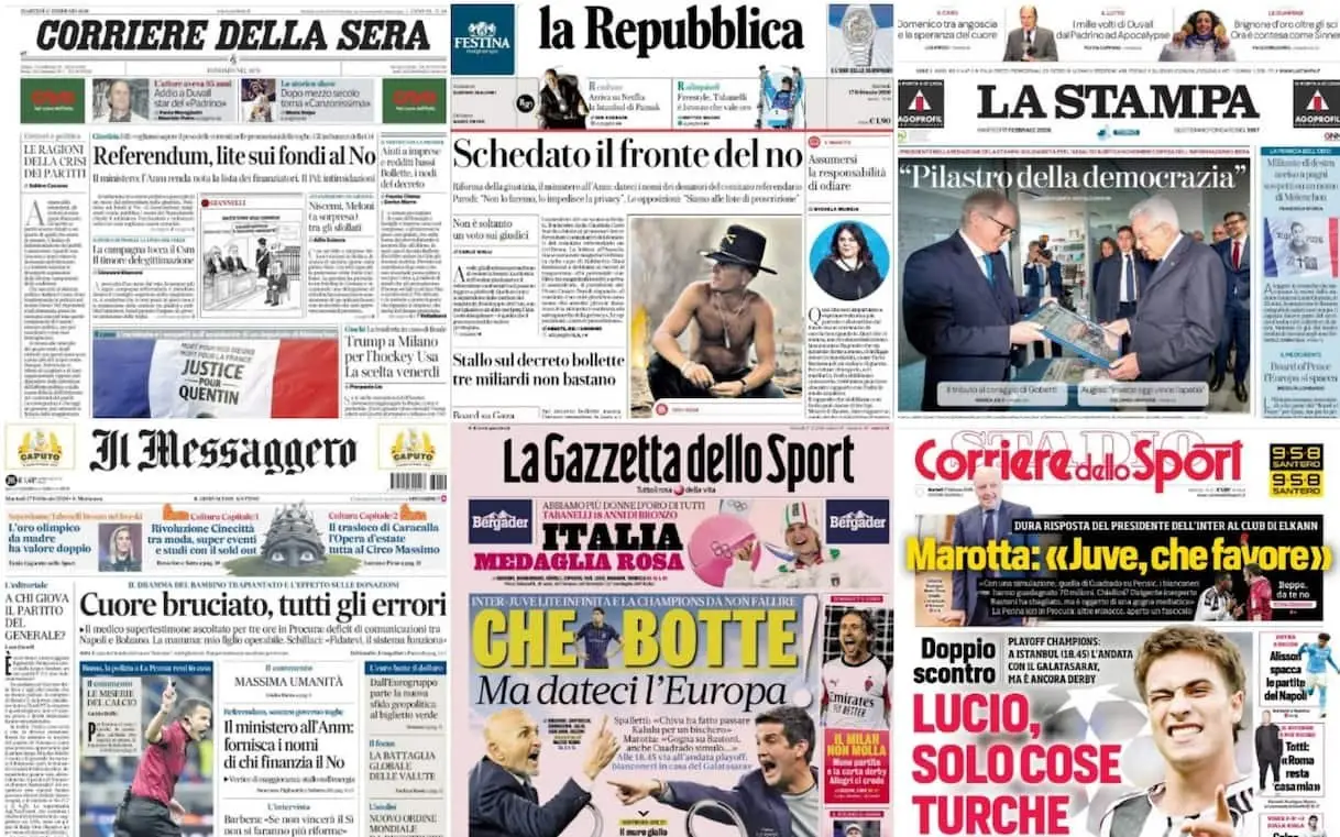 Le prime pagine dei quotidiani di oggi 17 febbraio: la rassegna stampa