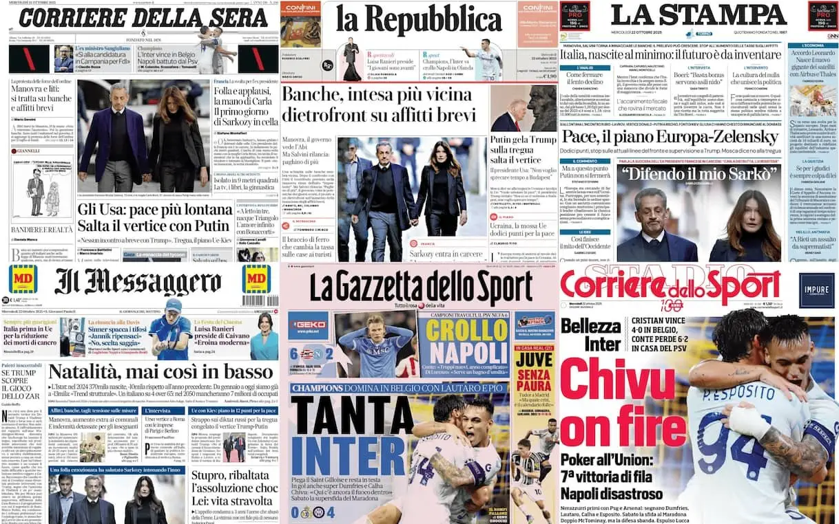 Le prime pagine dei quotidiani di oggi 22 ottobre: la rassegna stampa